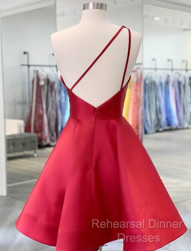 A-Line Backless Homecoming Dresses Red Mini Sleeveless One Shoulder Graduation Dress With Appliques
