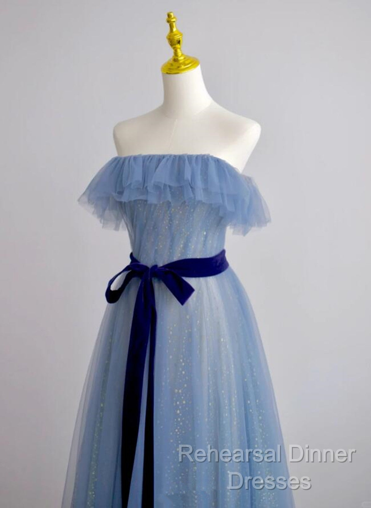 A-Line Blue Simple Off Shoulder Floor Length Semi Formal Prom Dress, Blue Long Party Dress