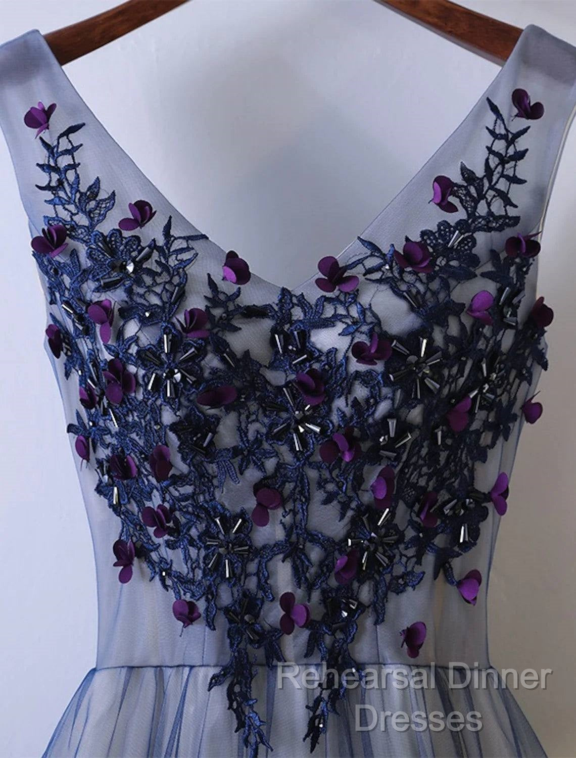 A-Line Bridesmaid Dress V Neck Sleeveless Elegant Floor Length Tulle With Beading / Appliques
