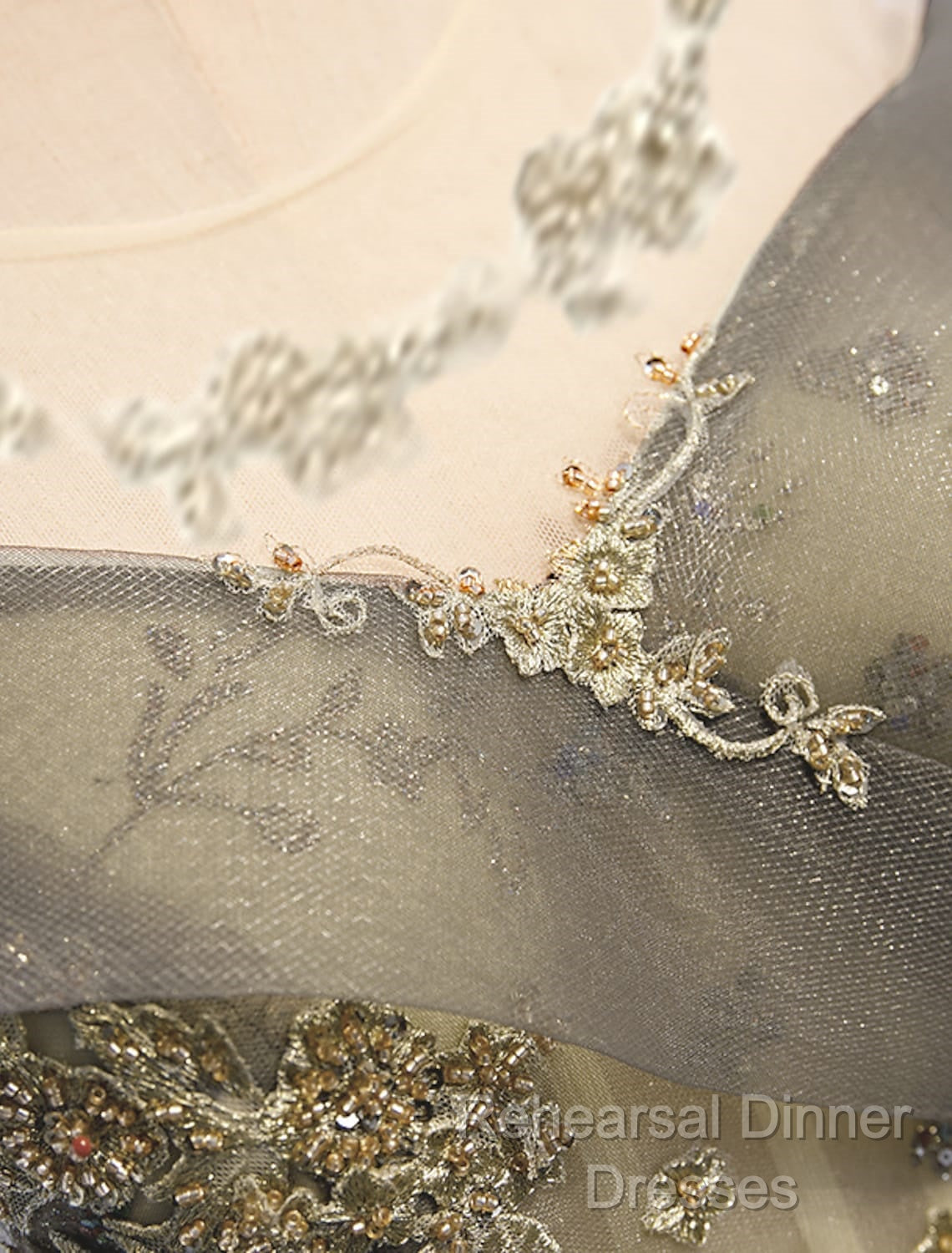 A-Line Evening Gown Elegant Dress Wedding Floor Length Short Sleeve Tulle With Pleats