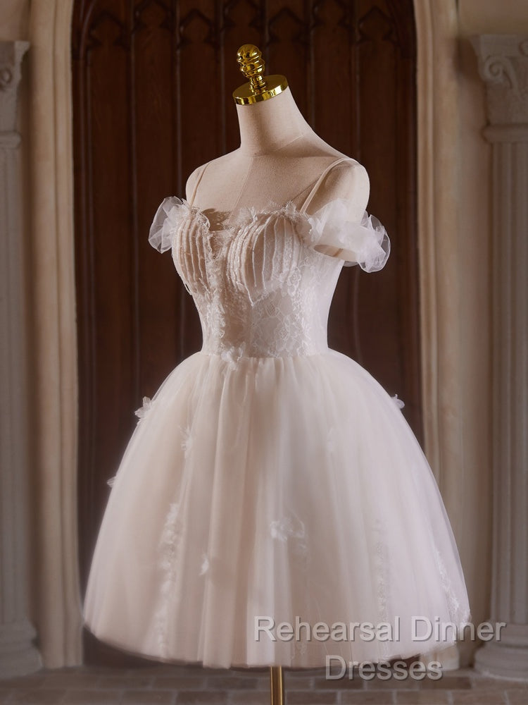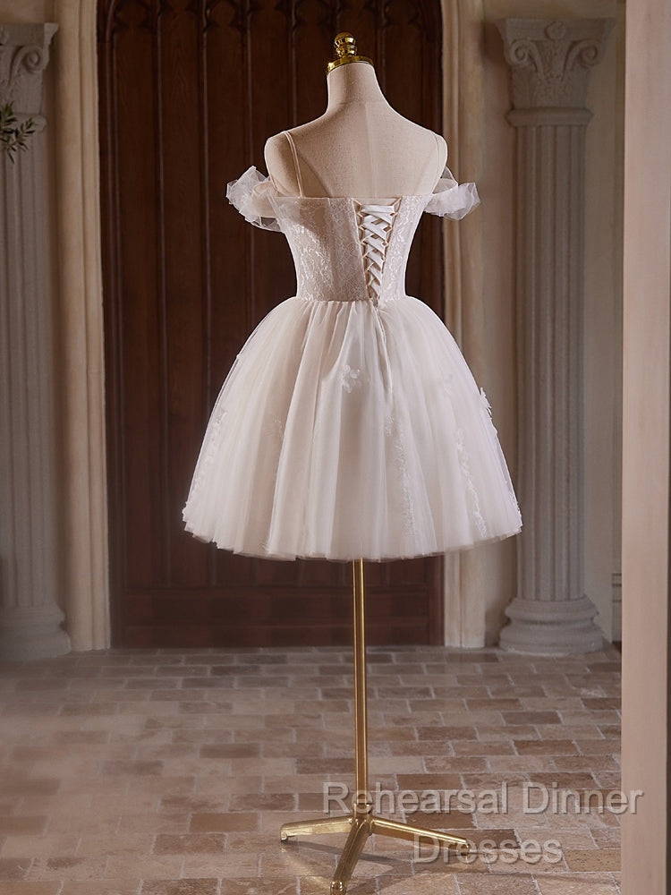 A-Line Off Shoulder Tulle Lace Light Champagne Short Semi Formal Prom Dress