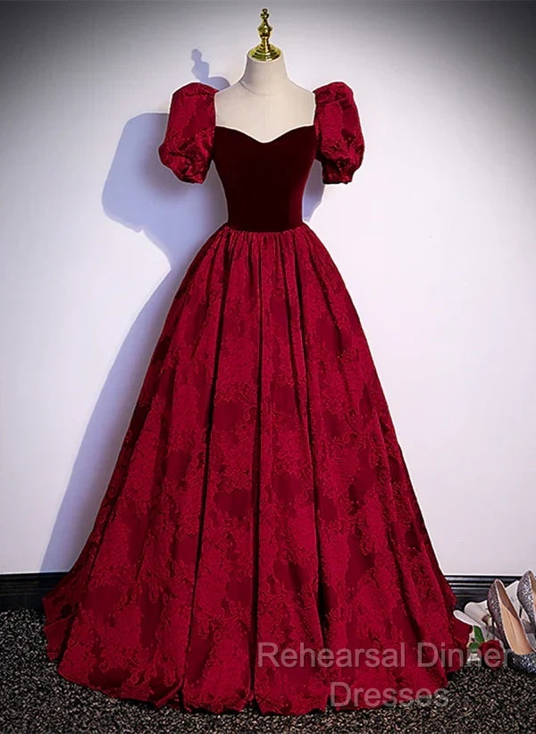 A-Line Princess Ballgown Sweetheart Short Sleeves Long Party Dress Evening Dress Semi Formal Prom Dress