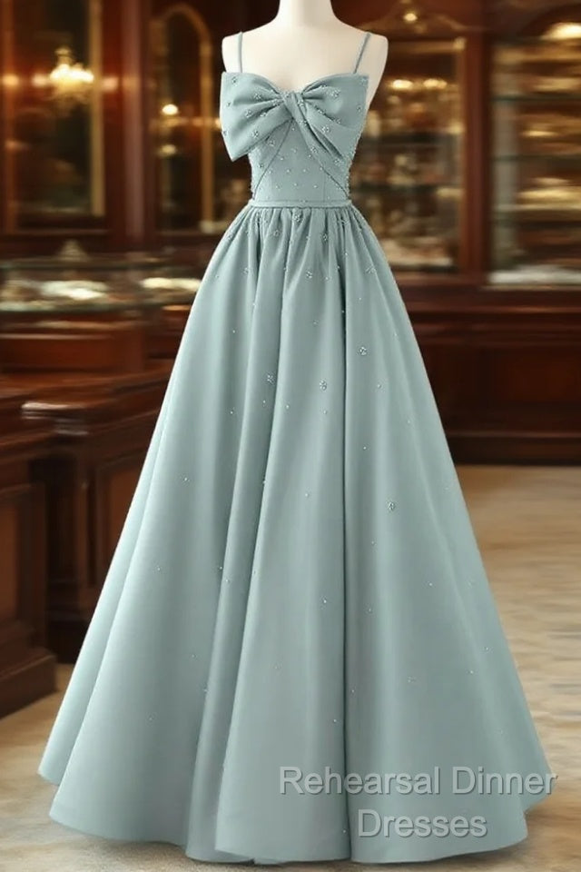 A-Line Sweetheart Neck Satin Beads Blue Long Semi Formal Prom Dress, Blue Formal Dress