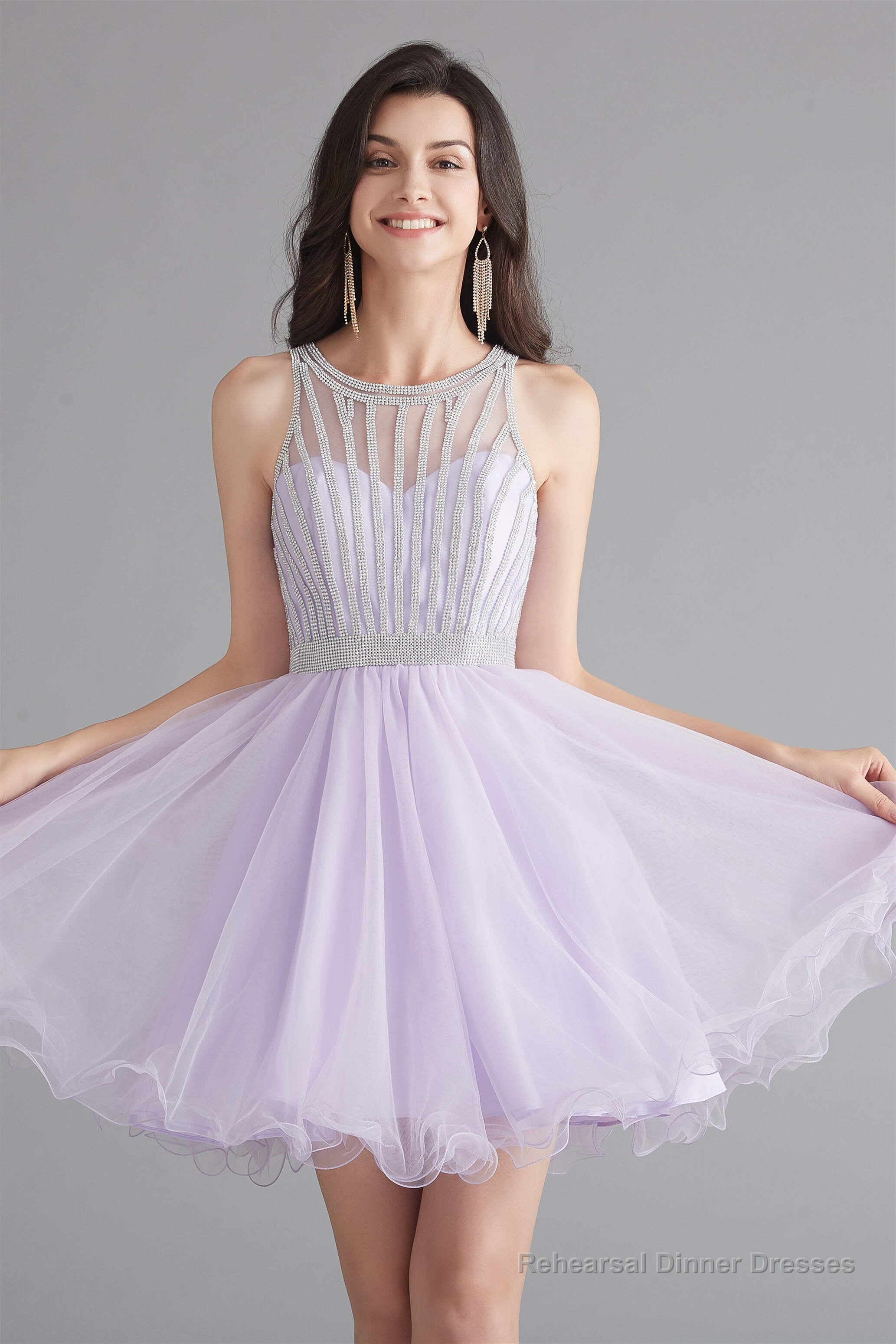 A-Line Tulle Sleeveless Beading Homecoming Dresses