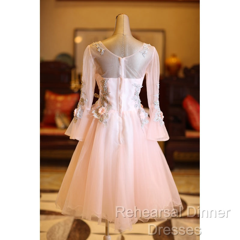 Adorable Pink Tulle Knee Length Long Sleeves Party Dress, Pink Homecoming Dress