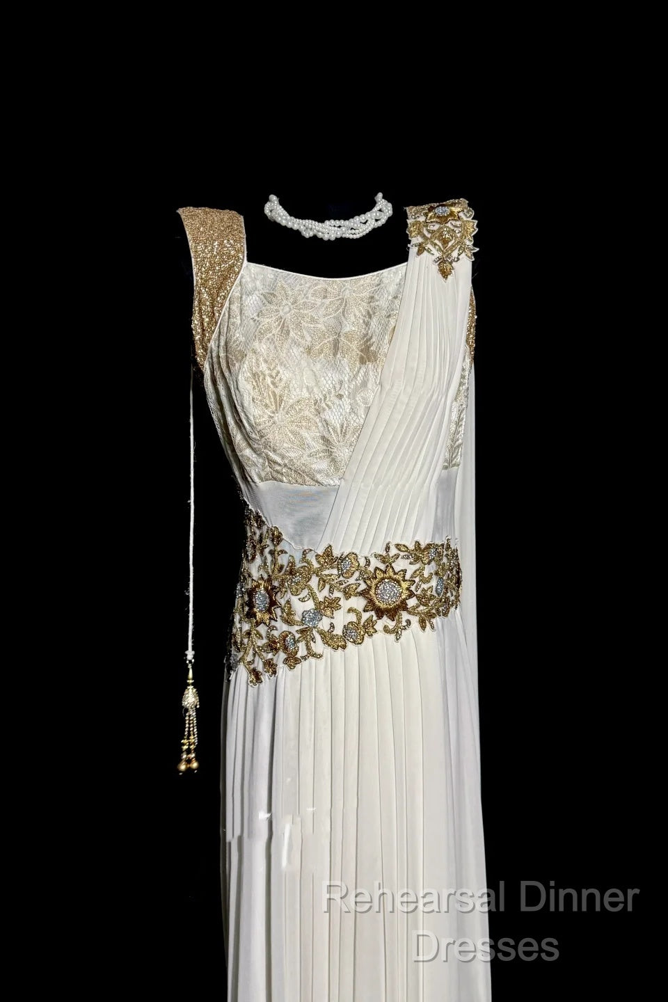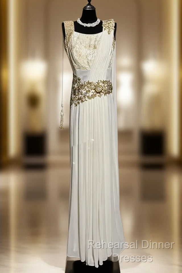 Aesthetic A Line Square Neckline White Chiffon Semi Formal Prom Dress Ruffle Long Party Dress