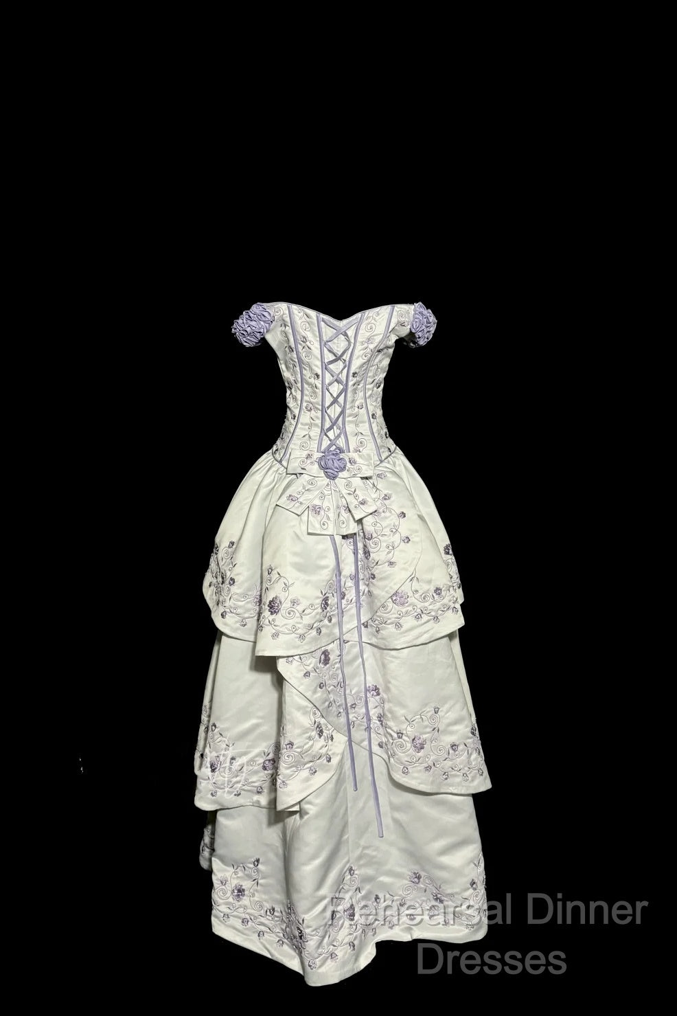Aesthetic Ball Gown Off The Shoulder White Semi Formal Prom Dress Ruffle Long Party Dress