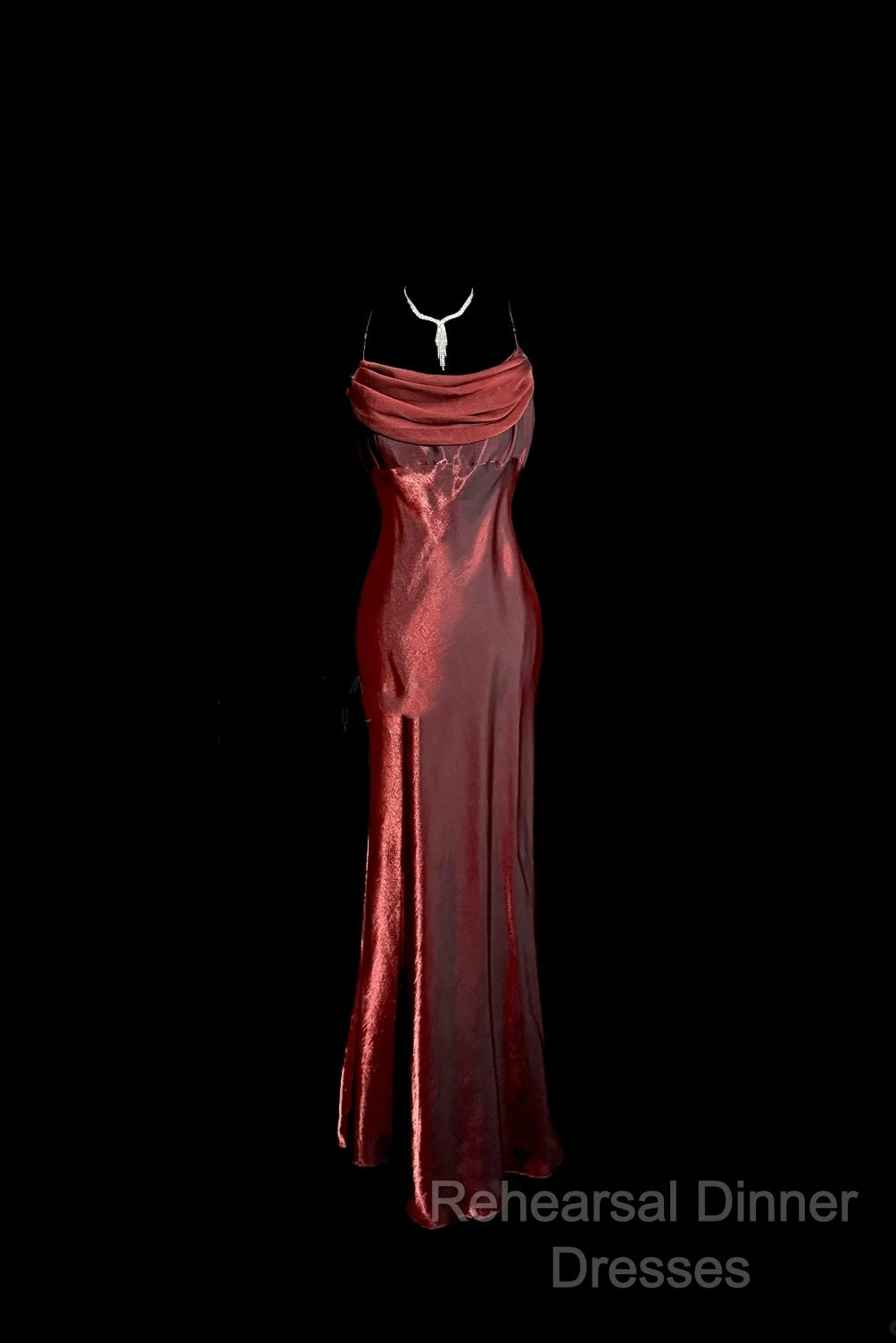 Aesthetic Mermaid Spaghetti Straps Burgundy Semi Formal Prom Dress Ruffle Long Party Dress