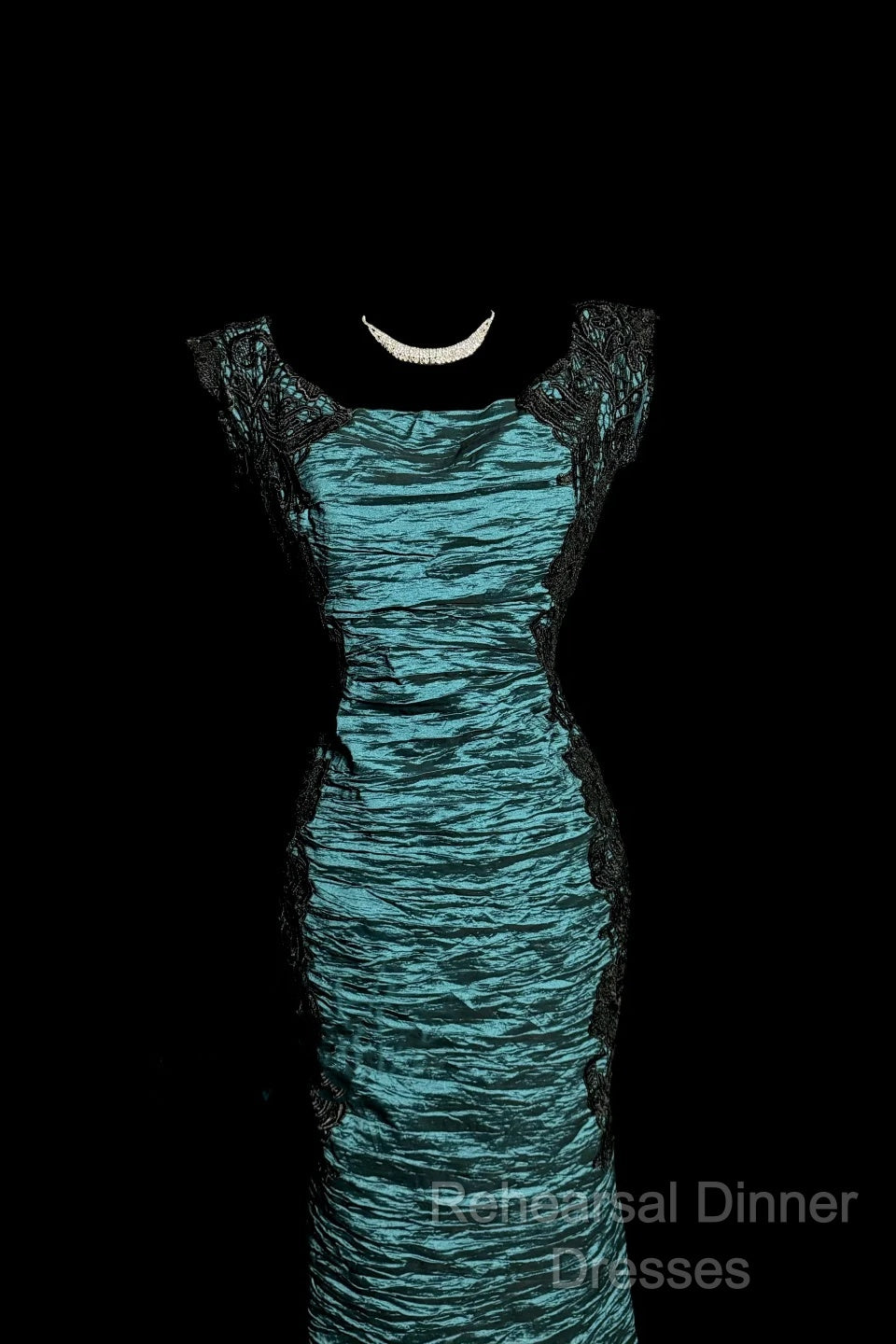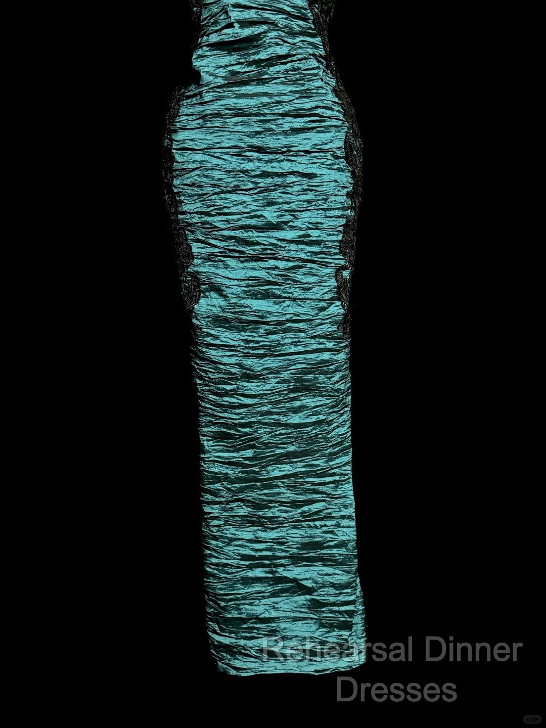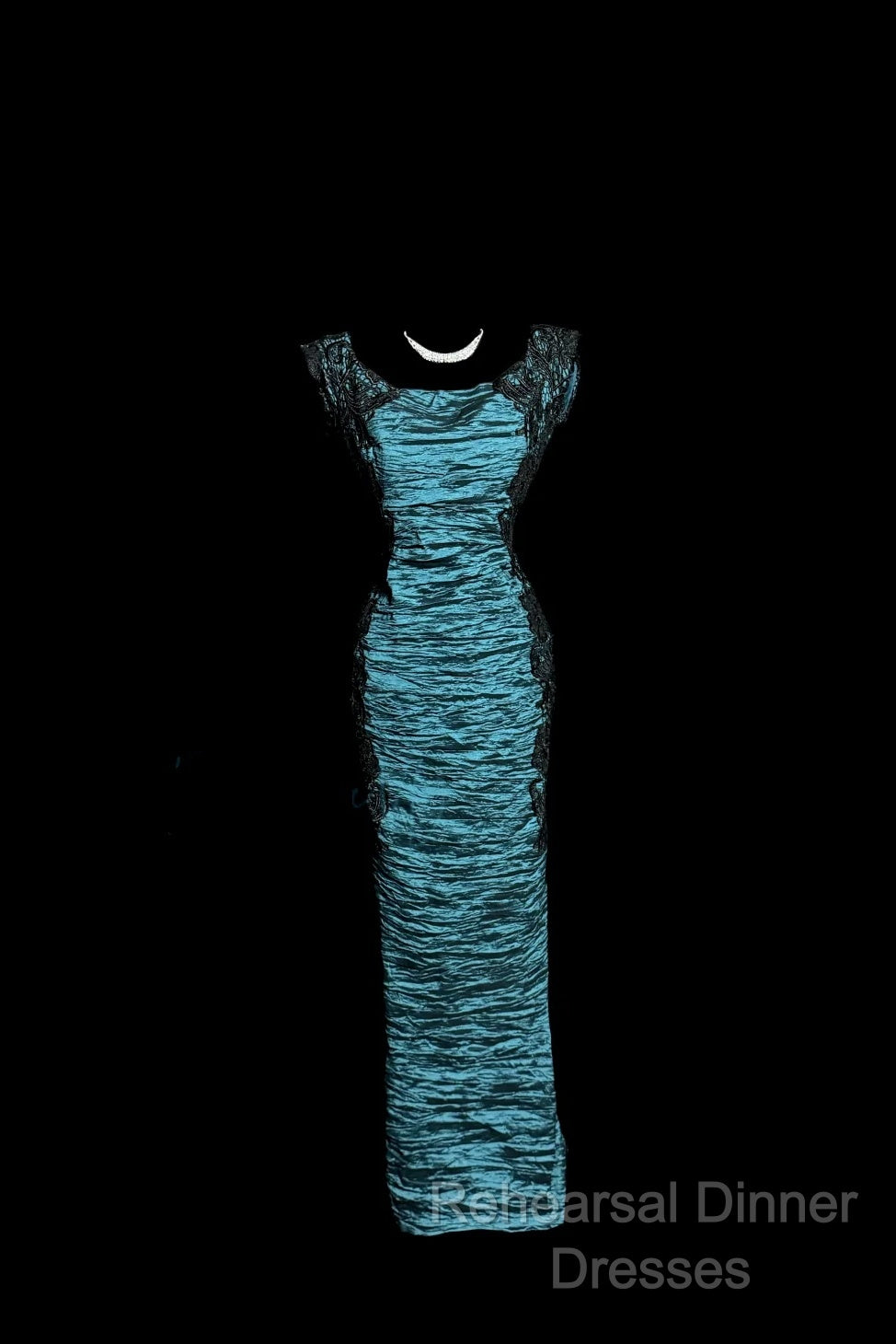 Aesthetic Mermaid Square Neckline Blue Taffeta Semi Formal Prom Dress Ruffle Long Party Dress