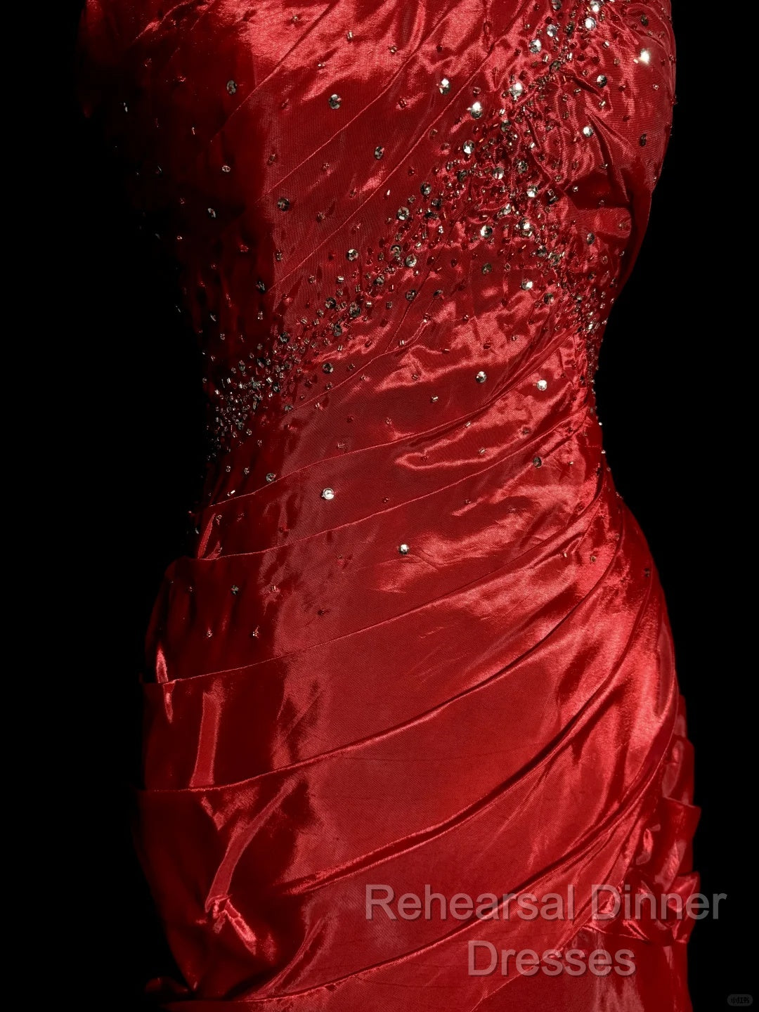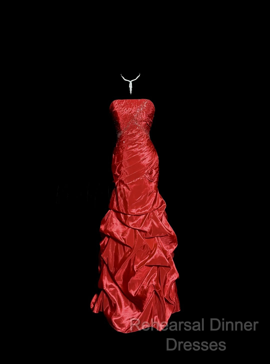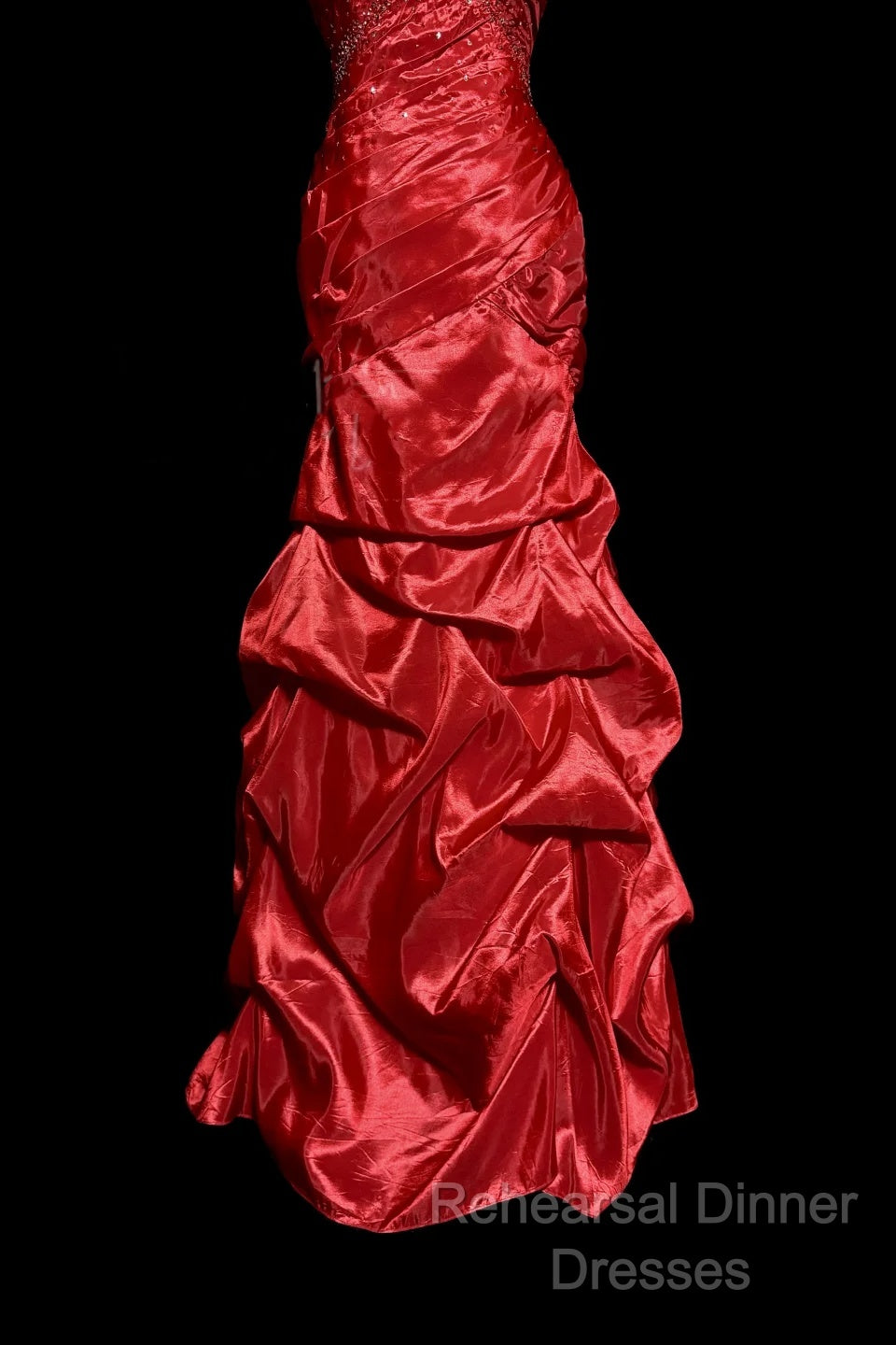 Aesthetic Mermaid Strapless Neckline Red Taffeta Semi Formal Prom Dress Ruffle Long Party Dress
