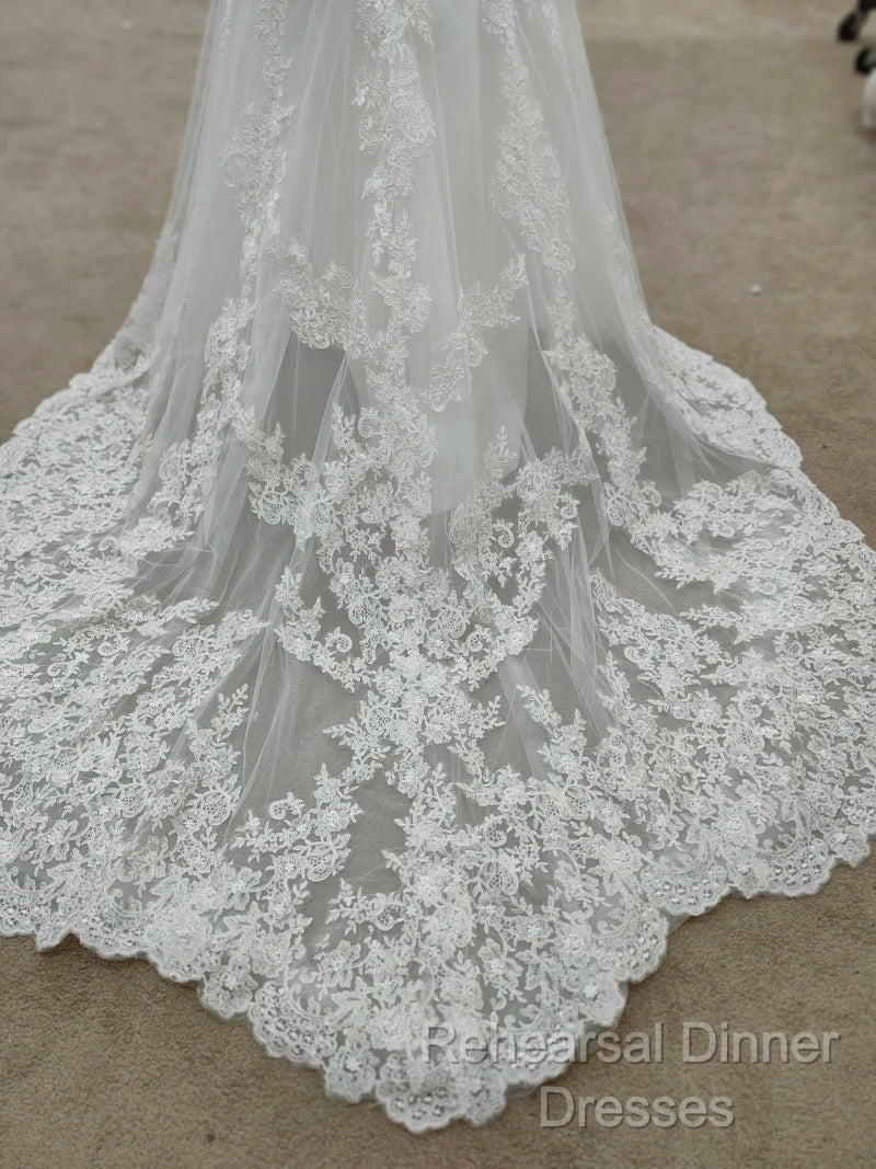 Backless Bohemian Simple V-Neck Long Sleeve Lace Wedding Dress With Train