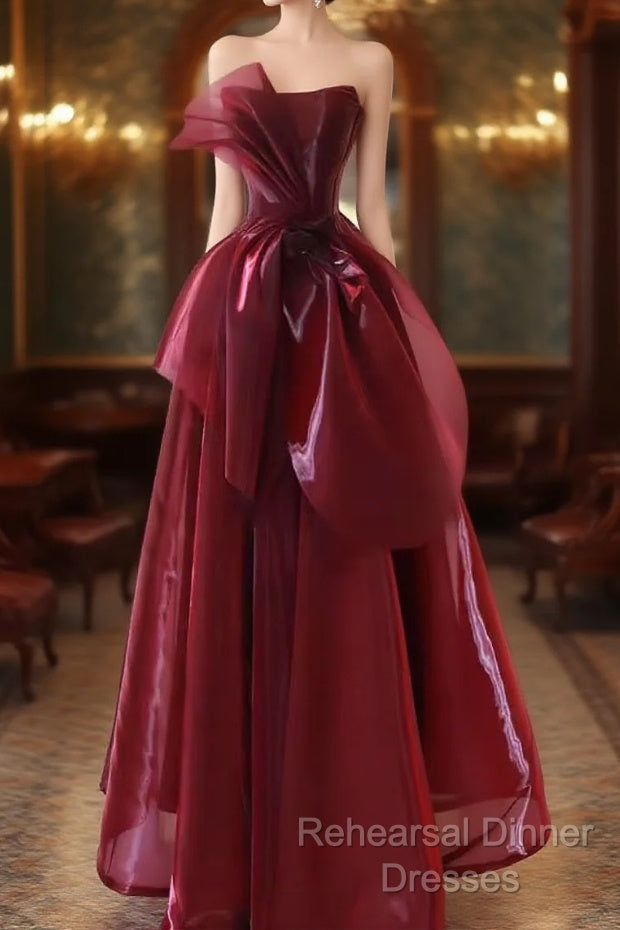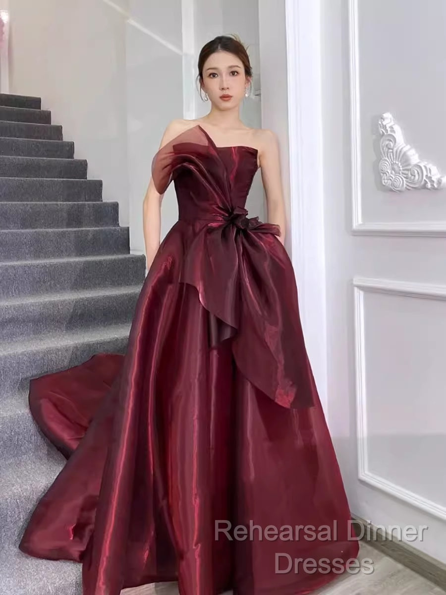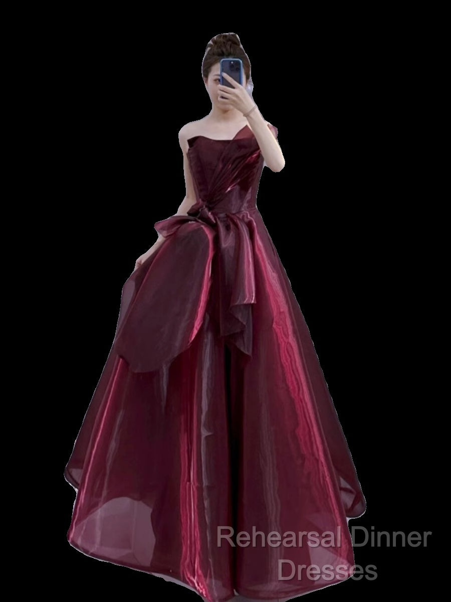 Ball Gown Strapless Burgundy Organza Semi Formal Prom Dresses Evening Dress