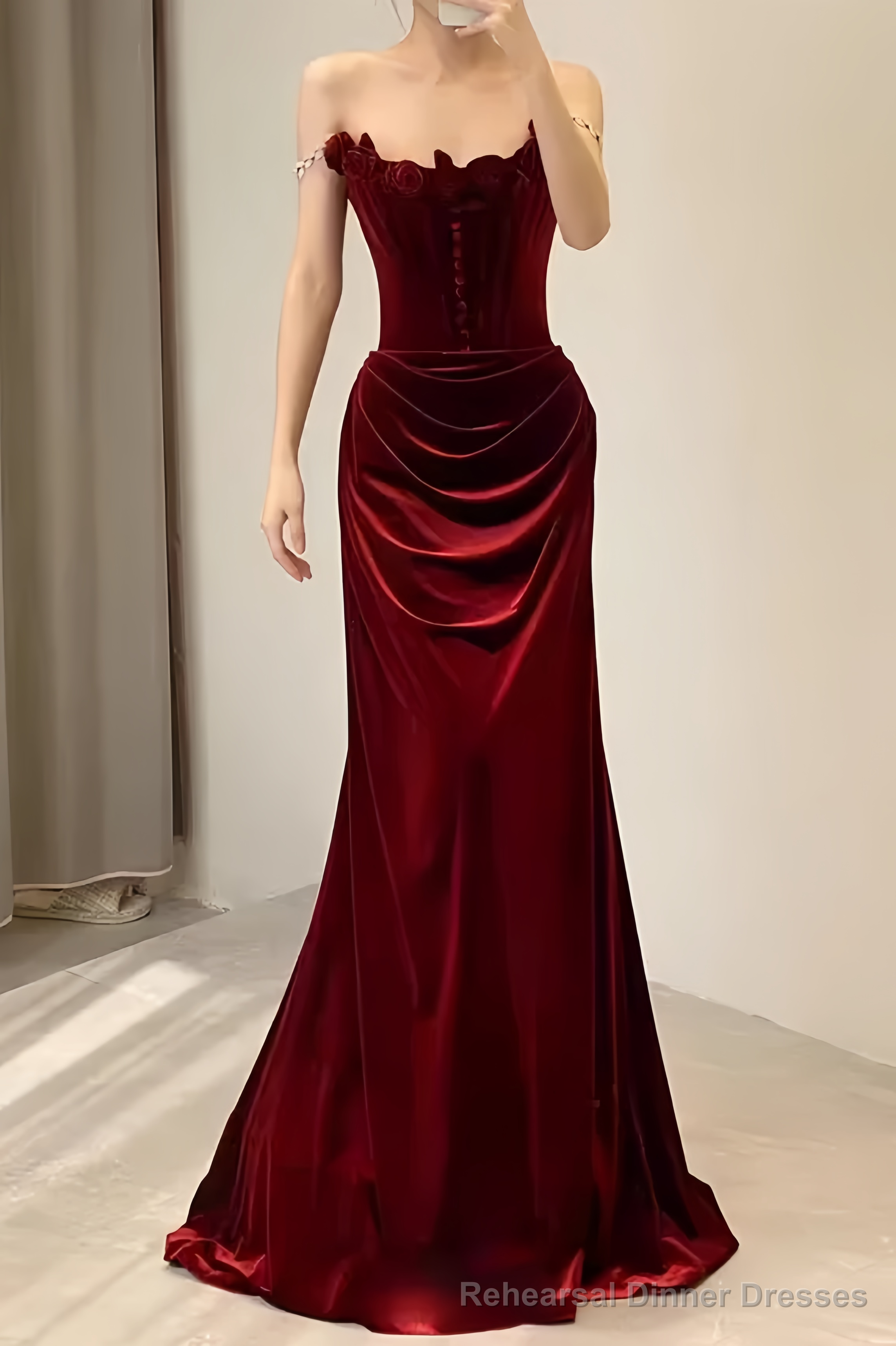 Beautiful Mermaid Strapless Red Velvet Long Prom Dress