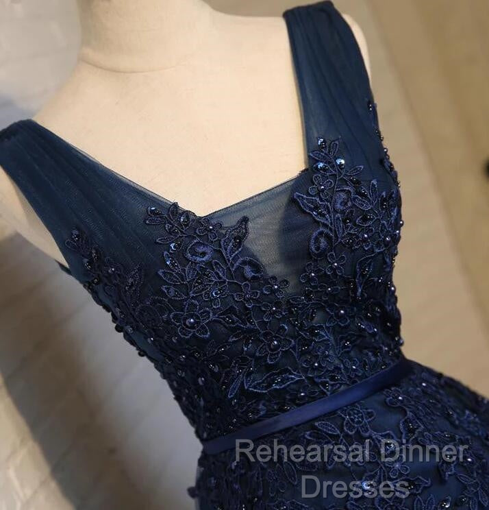 Beautiful Navy Blue Knee Length Homecoming Dresses, V-Neckline Short Formal Dresses