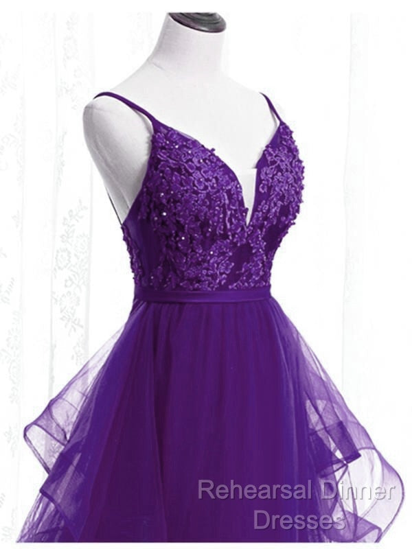 Beautiful Purple Tulle Layers With Lace Long Evening Dresses, Purple Semi Formal Prom Dress Party Dresses