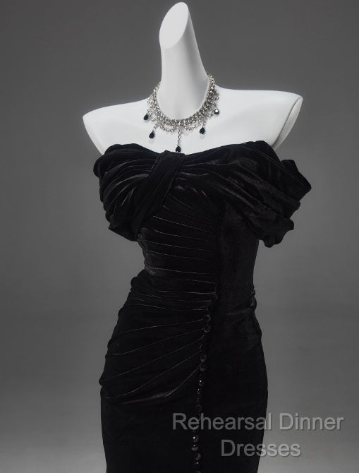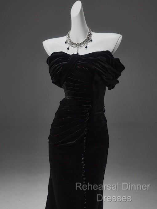 Black Mermaid Off-The-Shoulder Velvet Long Semi Formal Prom Dress, Elegant Quinceanera Dress