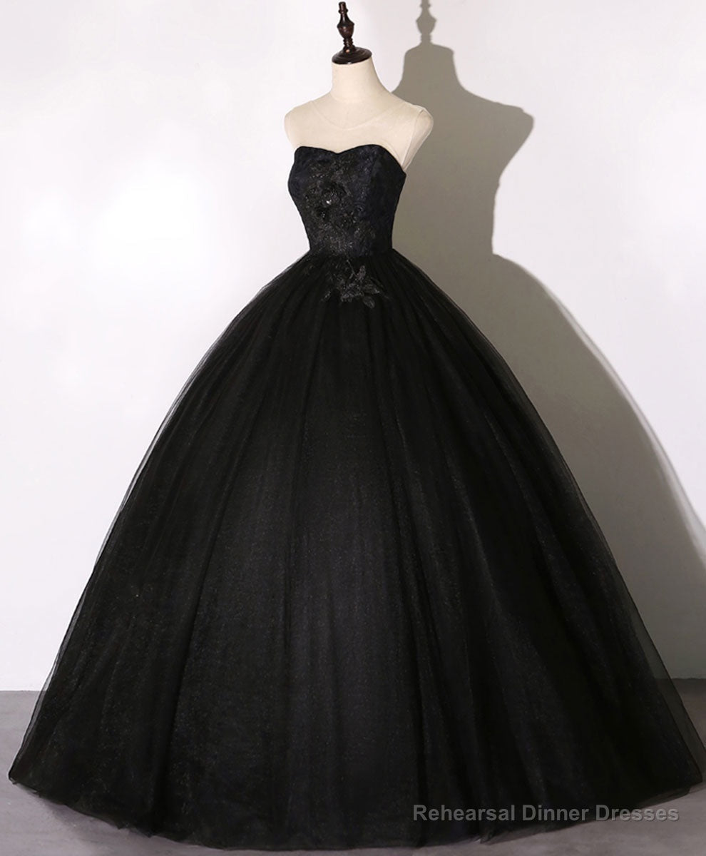 Black Sweetheart Neck Tulle Long Prom Dress Black Evening Dress