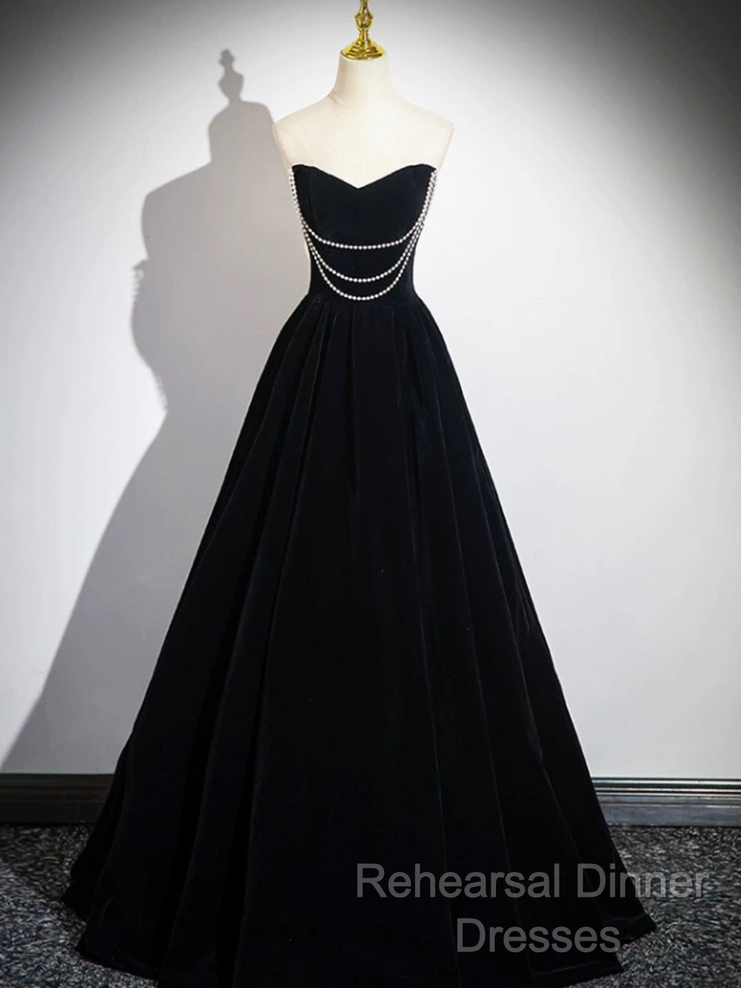 Black Velvet Floor Length Semi Formal Prom Dress, Off The Shoulder A-Line Evening Party Dress