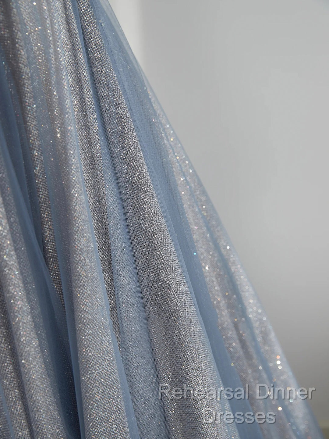 Blue Tulle Long Semi Formal Prom Dress, A-Line Off The Shoulder Blue Evening Party Dress