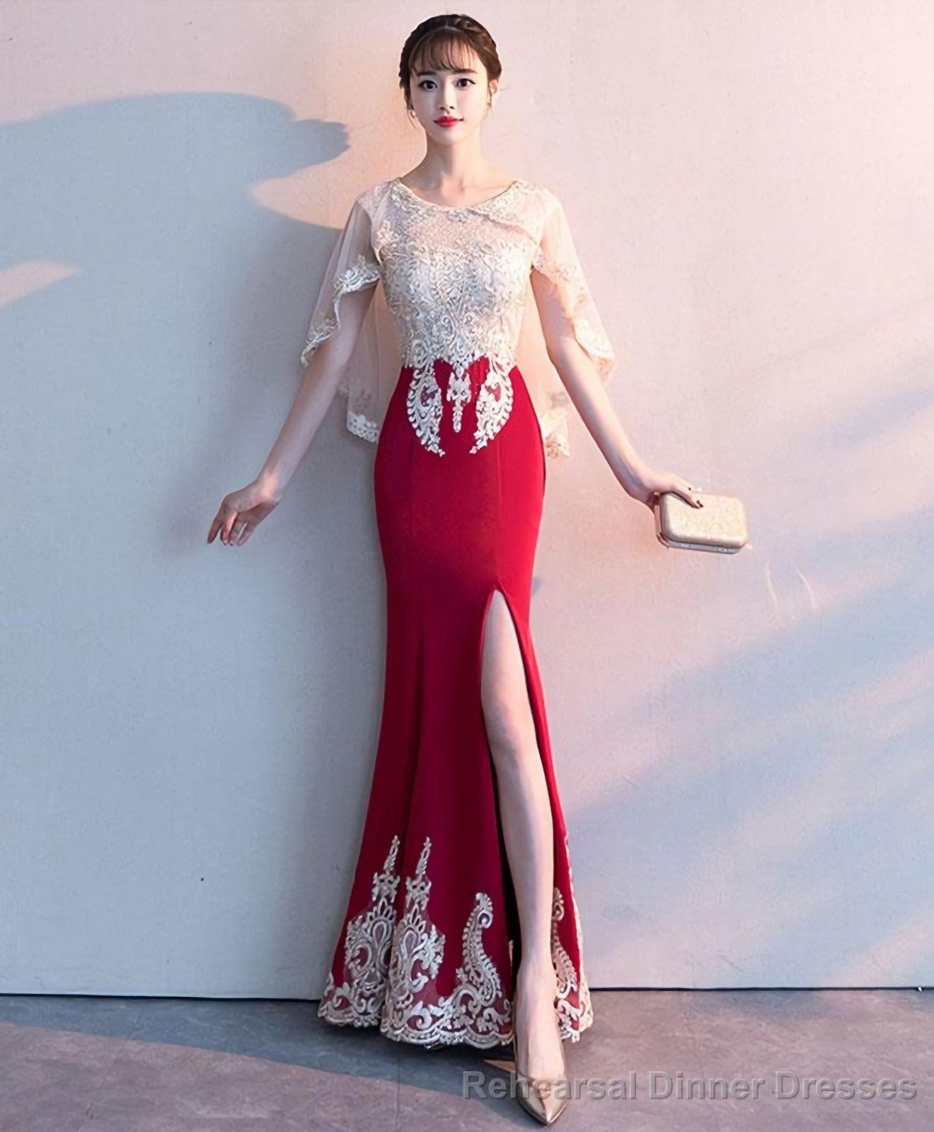 Burgundy Lace Mermaid Long Prom Dress Lace Formal Dress