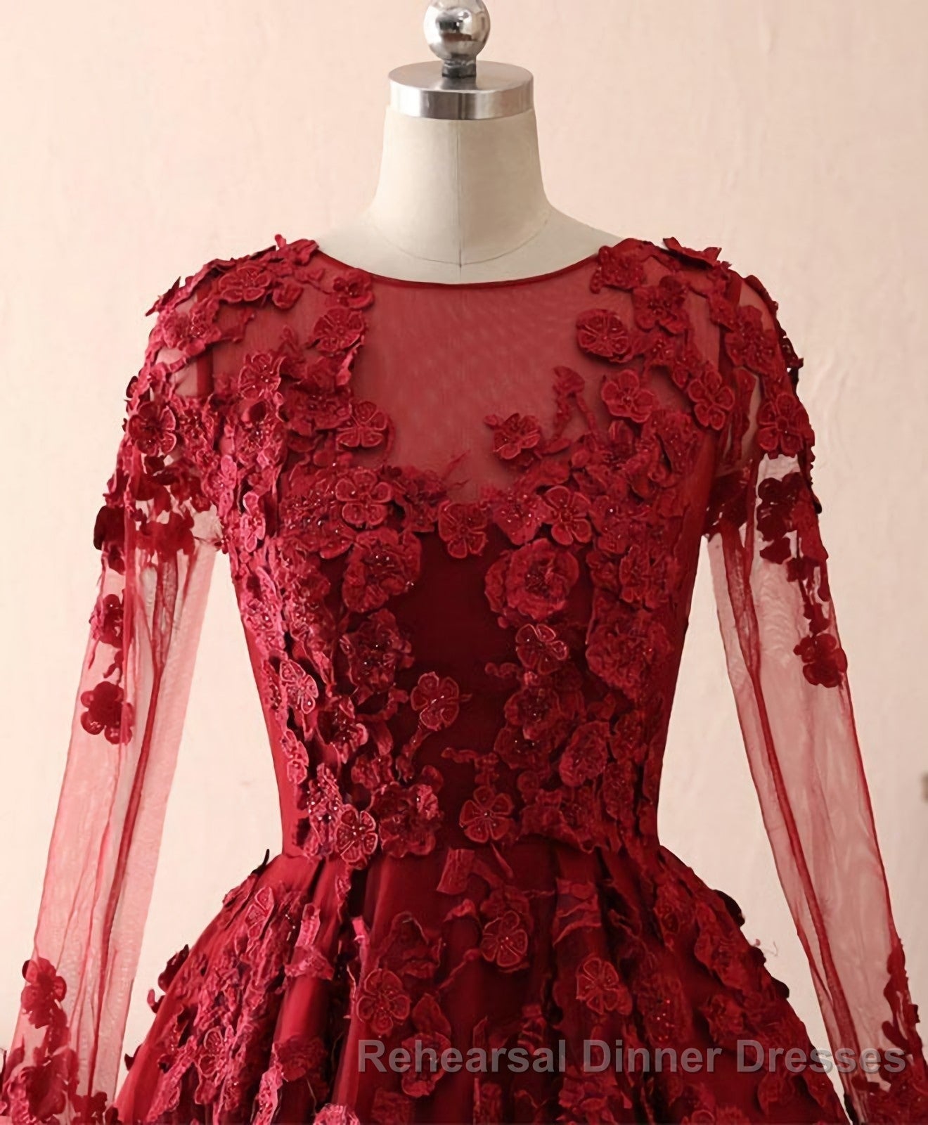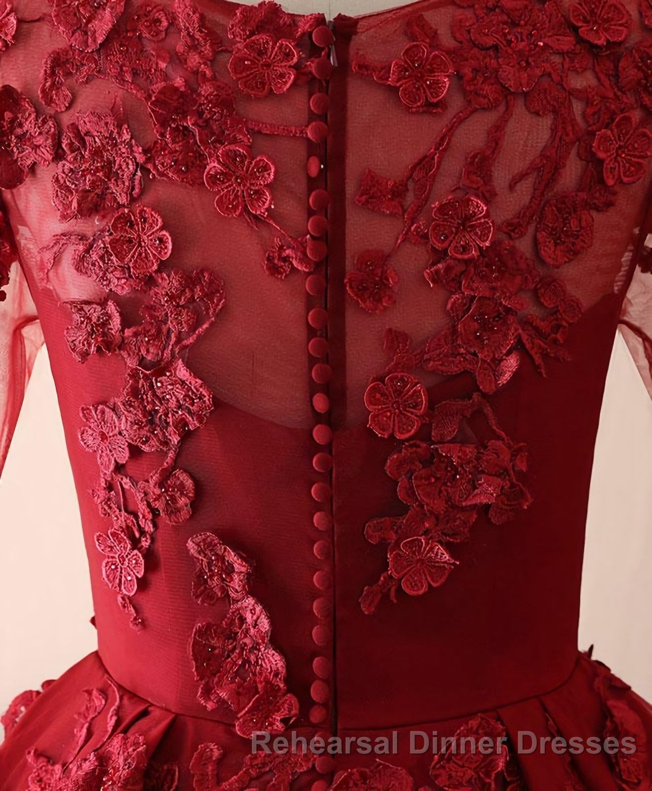 Burgundy Lace Satin Long Semi Formal Prom Dress, Burgundy Lace Evening Dress