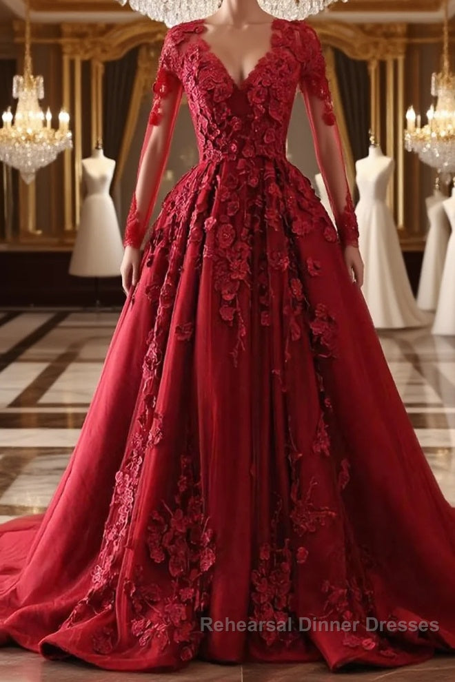 Burgundy round neck lace long Semi Formal Prom Dresses burgundy evening Dresses