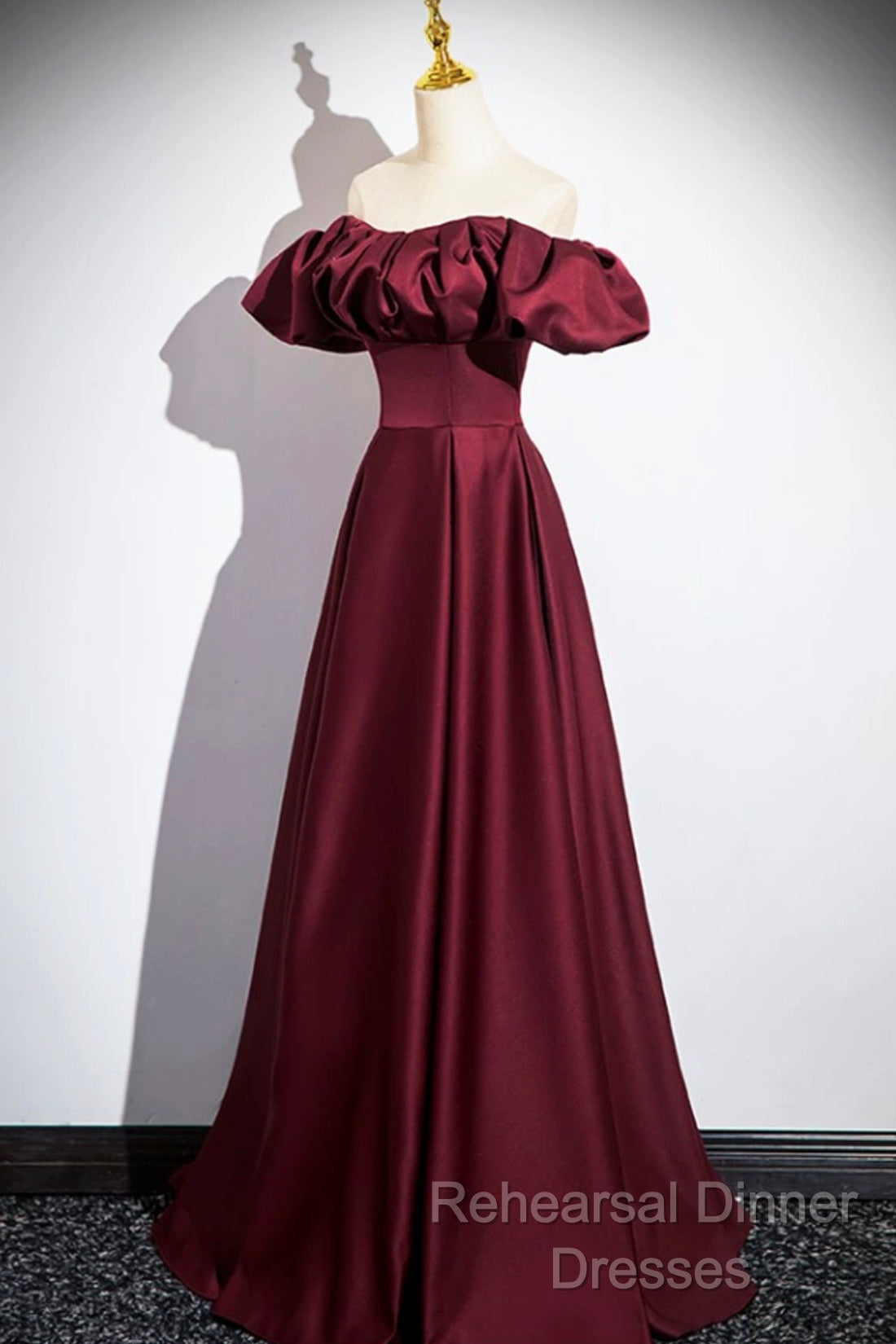 Burgundy Satin Floor Length Semi Formal Prom Dress, Simple A-Line Evening Party Dress