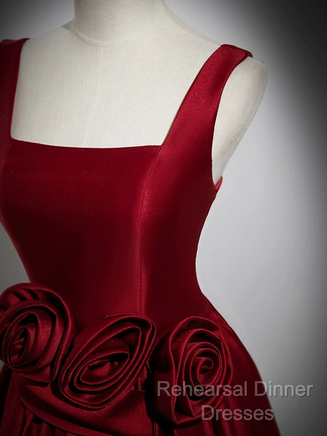 Burgundy Satin Long Semi Formal Prom Dress With Flowers, Elegant A-Line Party Dress