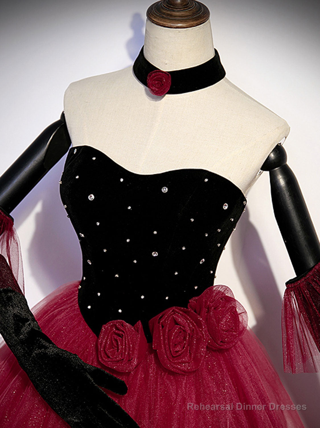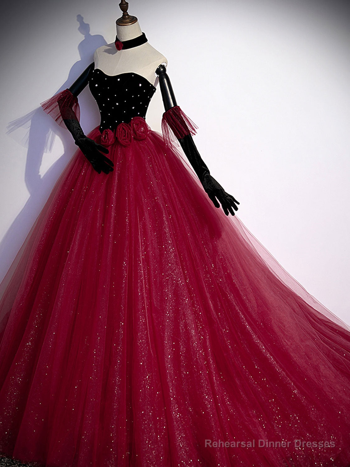Burgundy Tulle Long Prom Dress A line Burgundy Graduation Dresses