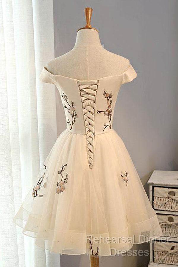 Champagne Embroidery Homecoming Dresses,Tulle Short Party Dresses