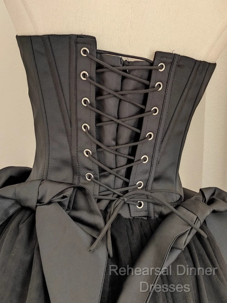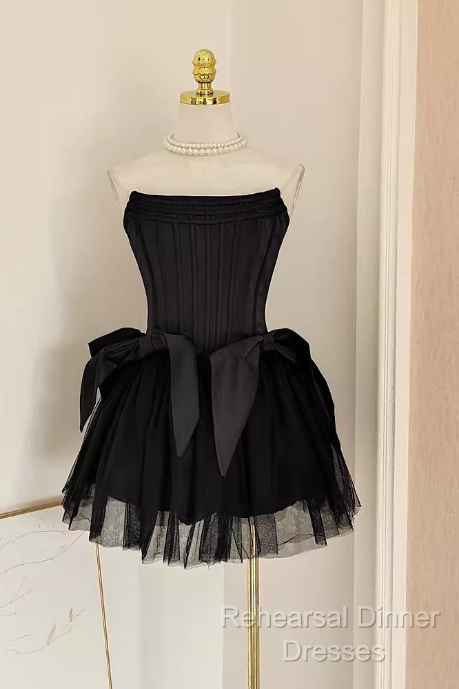 Cute A Line Strapless Black Travel Vacation Dresses Short Satin Birthday Dress