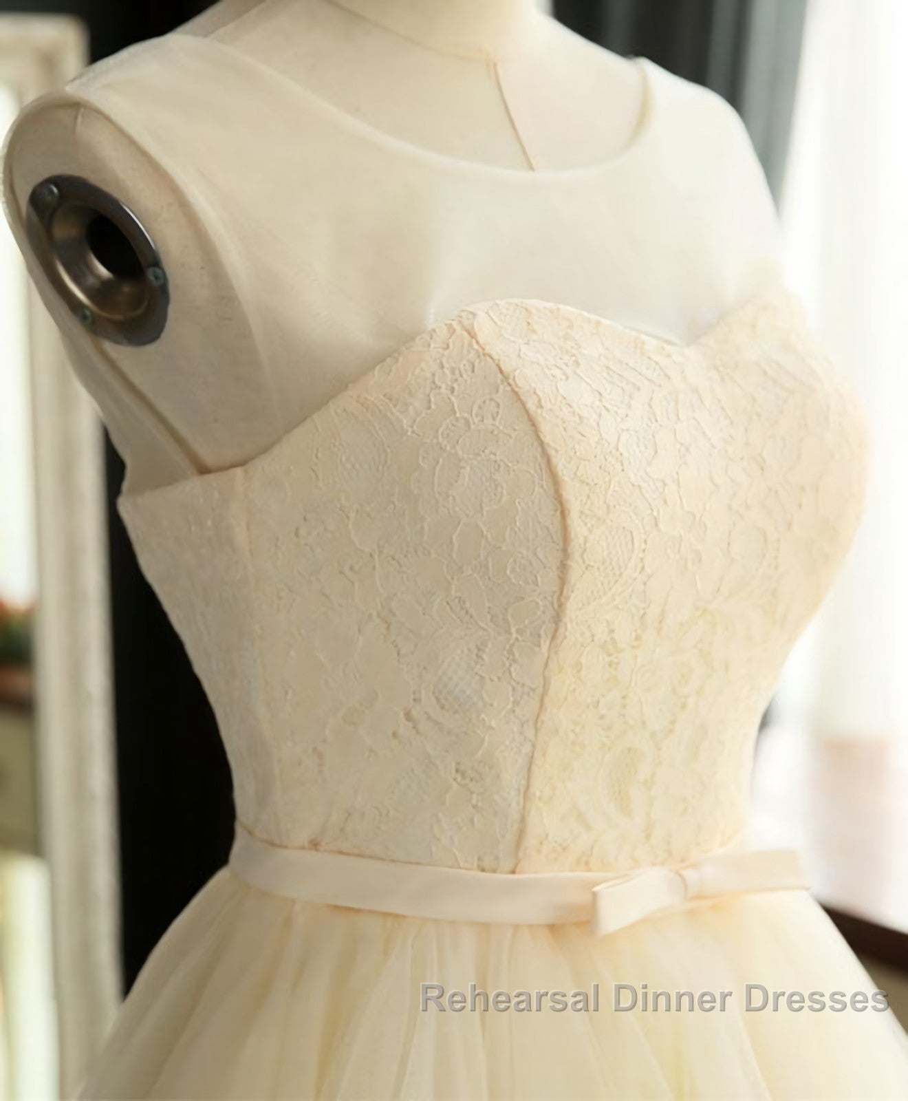 Cute A Line Tulle Round Neck Mini Semi Formal Dress, Cheap Evening Dress