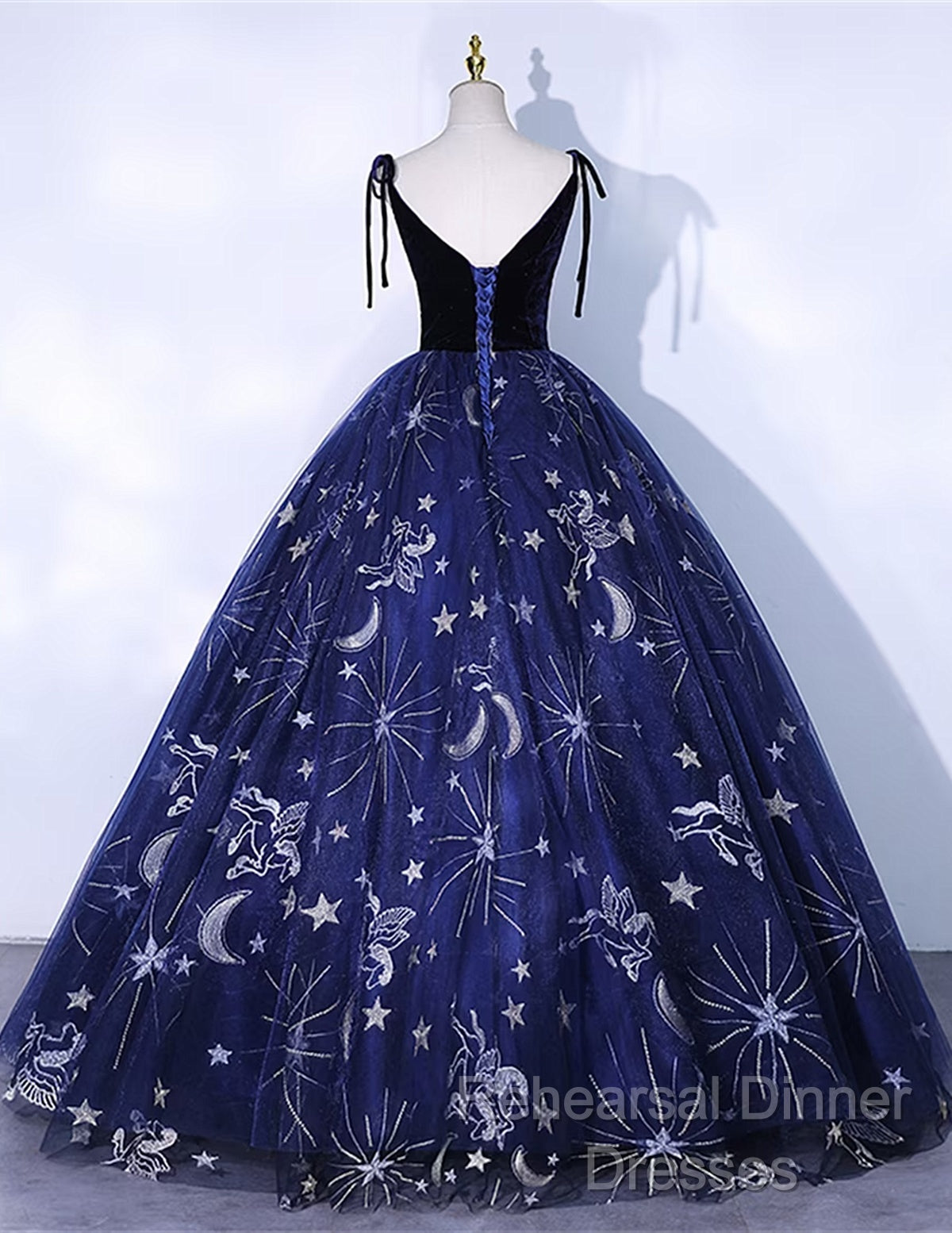 Cute Navy Blue Ball Gown V-Neckline Party Dress, Navy Blue Sweet 16 Dress