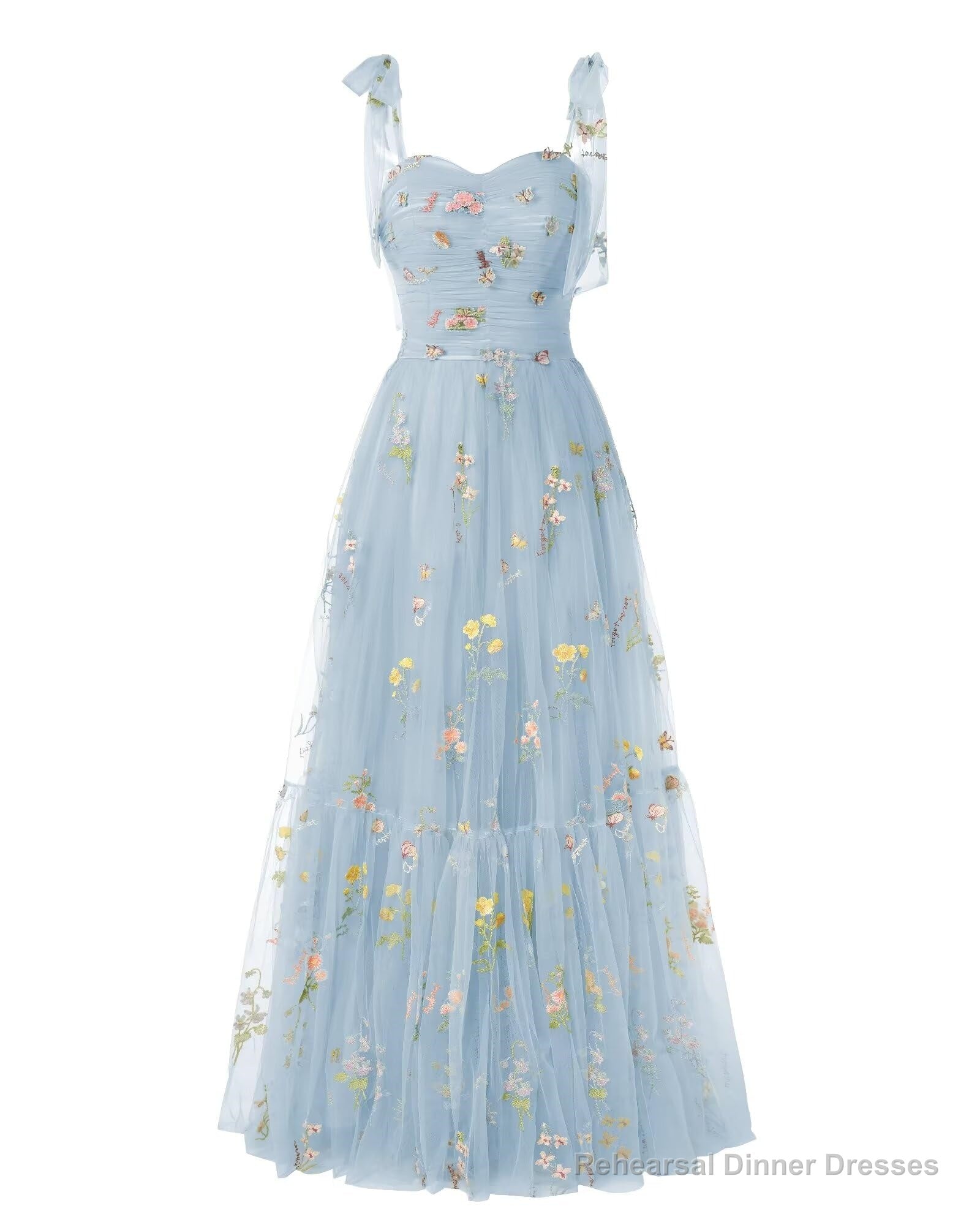 Elegant Embroidery Blue Prom Dresses Sweetheart Spaghetti Straps A Line Party Dress Long Simple Formal Dress