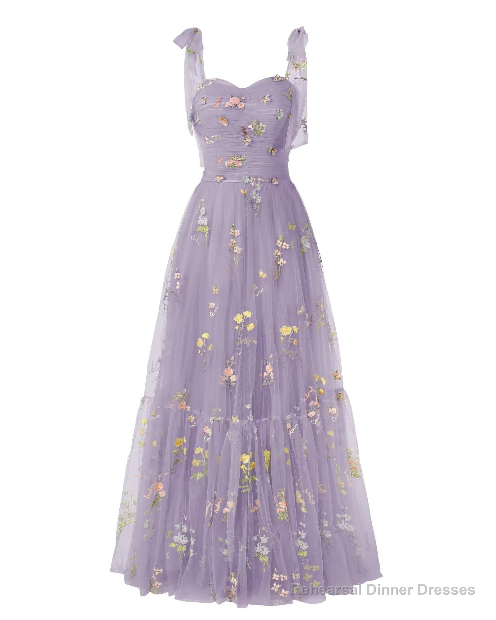 Elegant Embroidery Purple Violet Prom Dresses Sweetheart Spaghetti Straps A Line Party Dress Long Simple Formal Dress