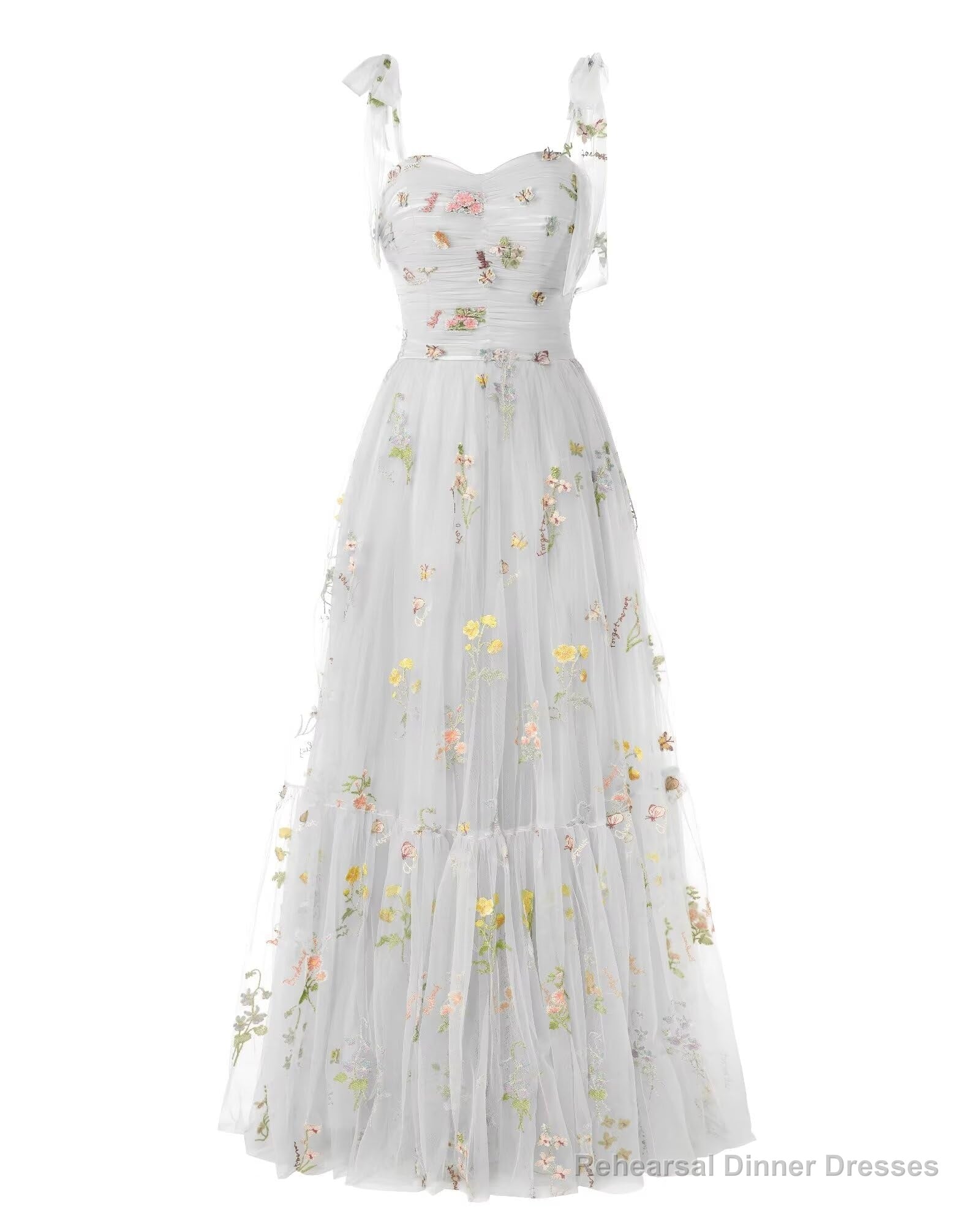 Elegant Embroidery White Prom Dresses Sweetheart Spaghetti Straps A Line Party Dress Long Simple Formal Dress