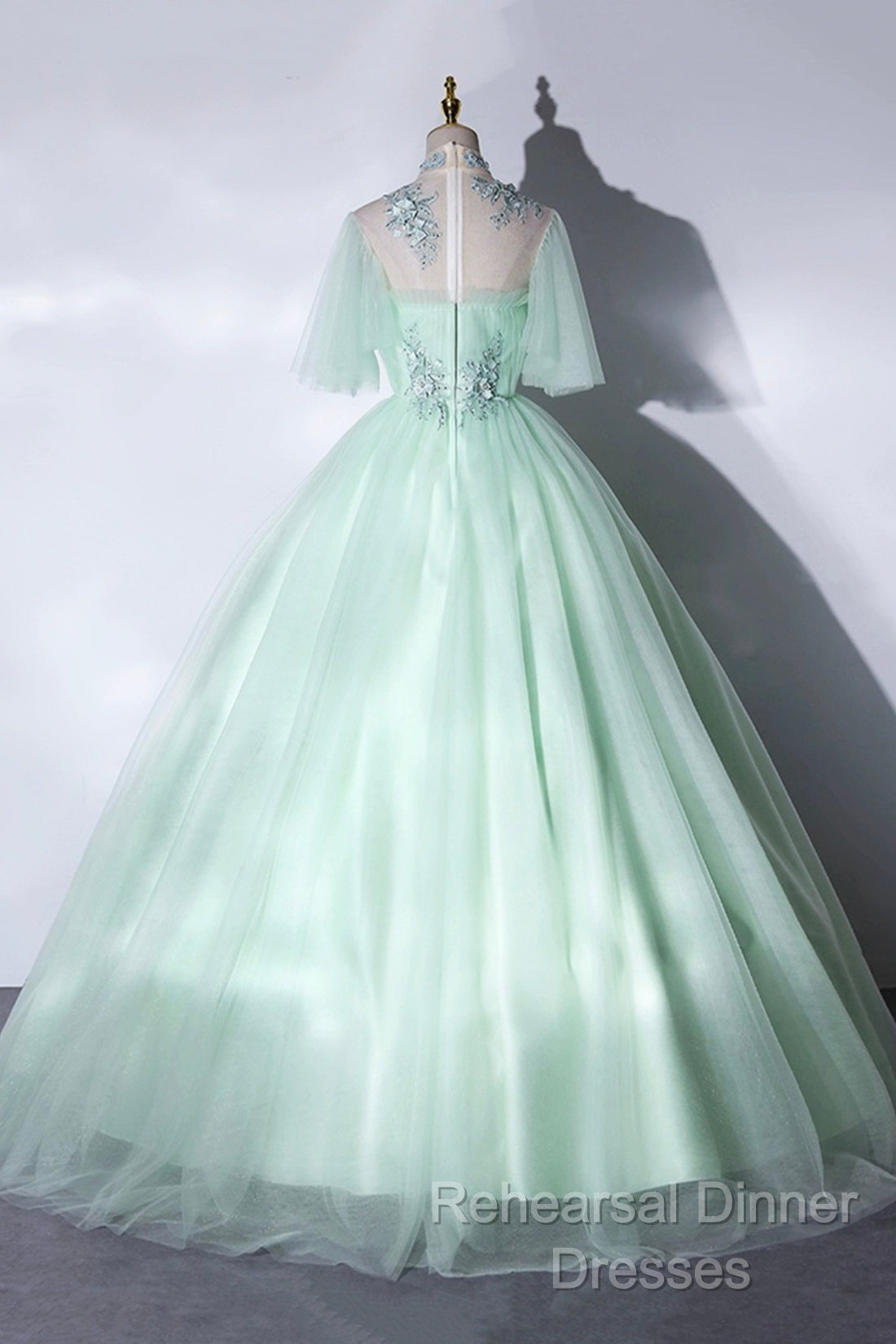 Elegant Green A-Line Princess Semi Formal Prom Dress, A-Line Lace Evening Party Dress