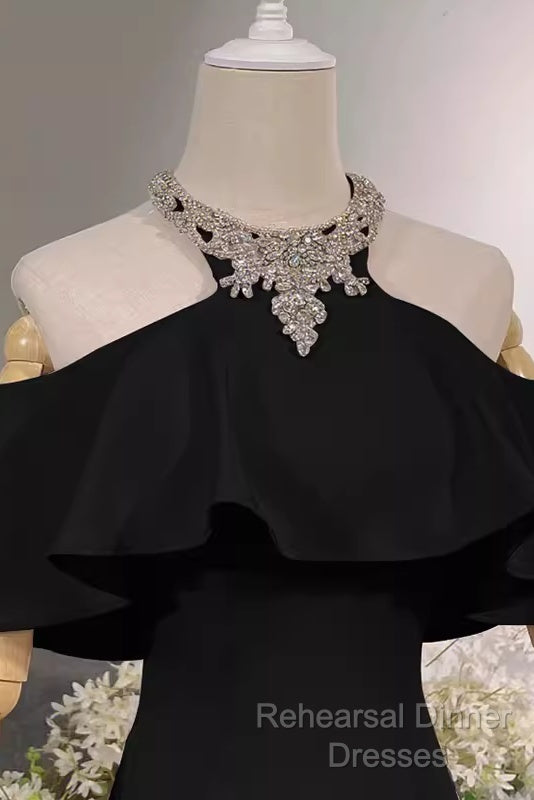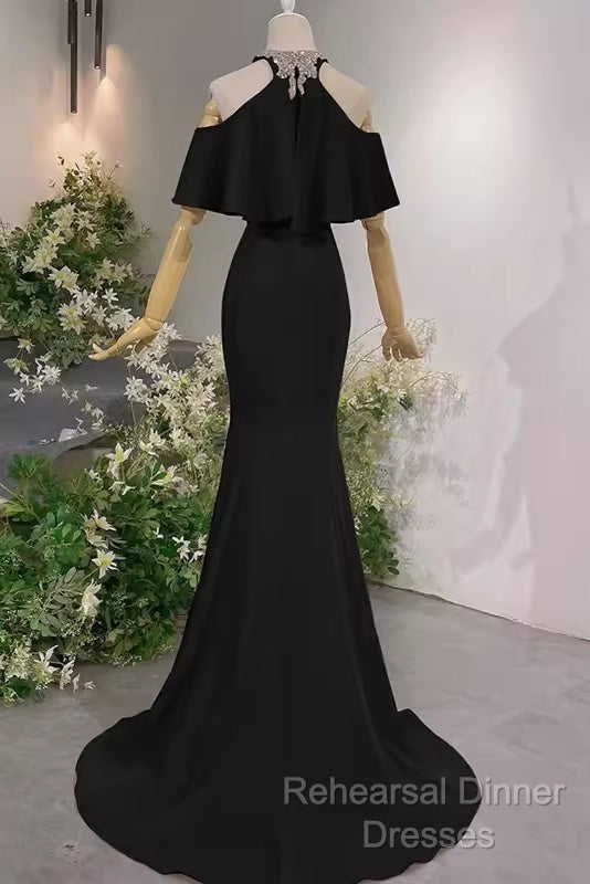 Elegant Mermaid Black Long Semi Formal Prom Dresses Formal Evening Dress