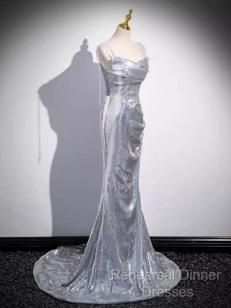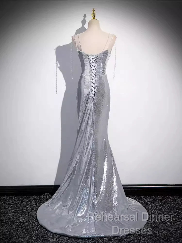 Elegant Silver Sequin Mermiad Semi Formal Prom Dress Long Evening Dress