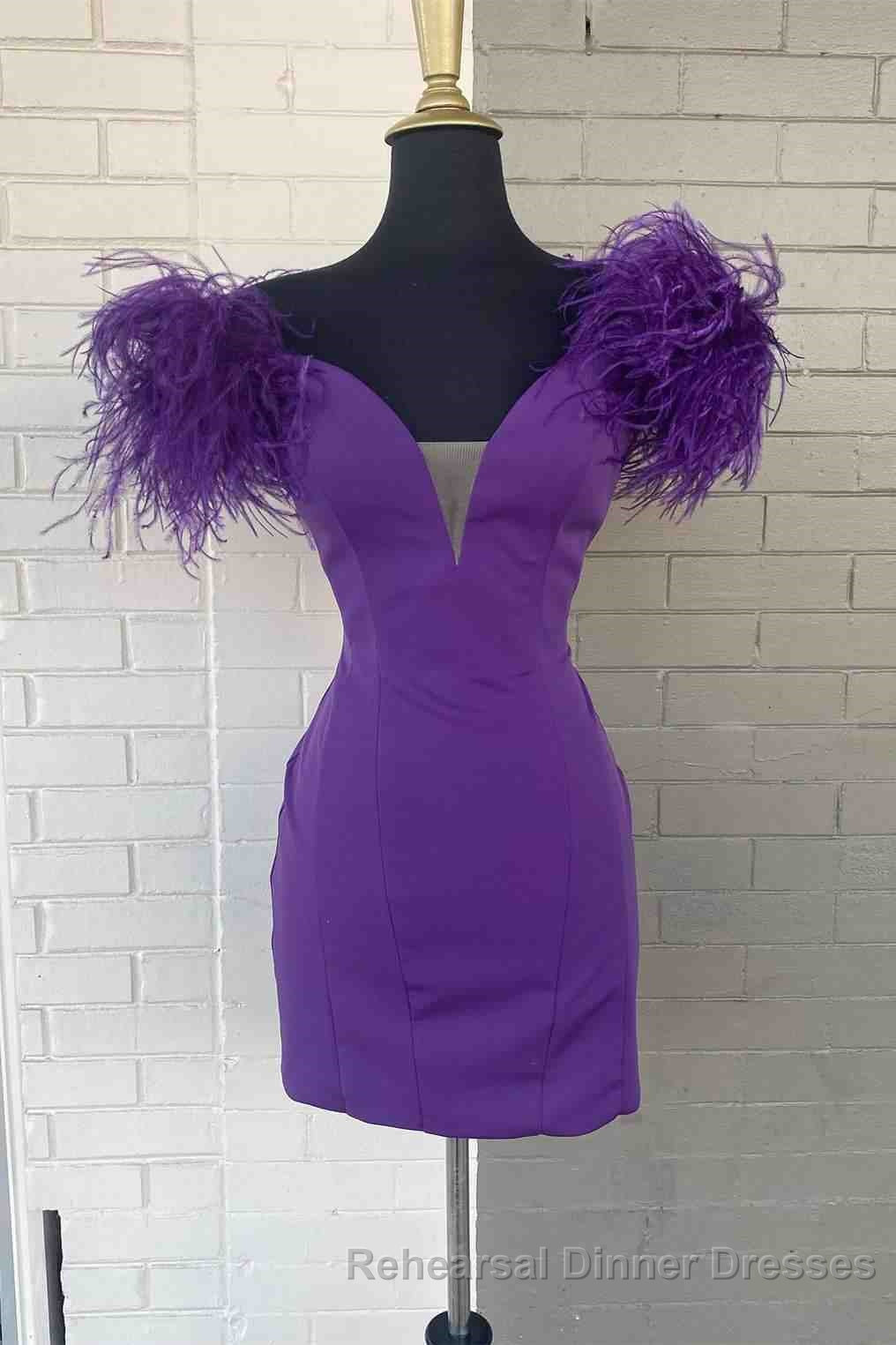 Fitted Feather Shoulder Blue Tight Homecoming Dress