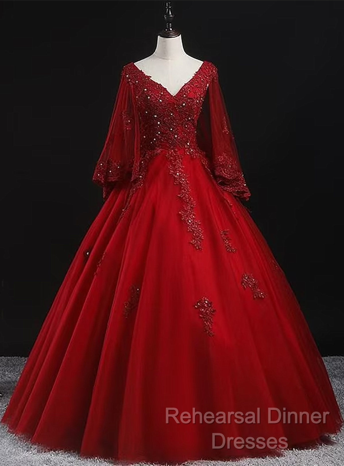 Glam Tulle With Lace Applique Ball Gown Sweet 16 Dress, Beaded Semi Formal Prom Dresses Evening Dress