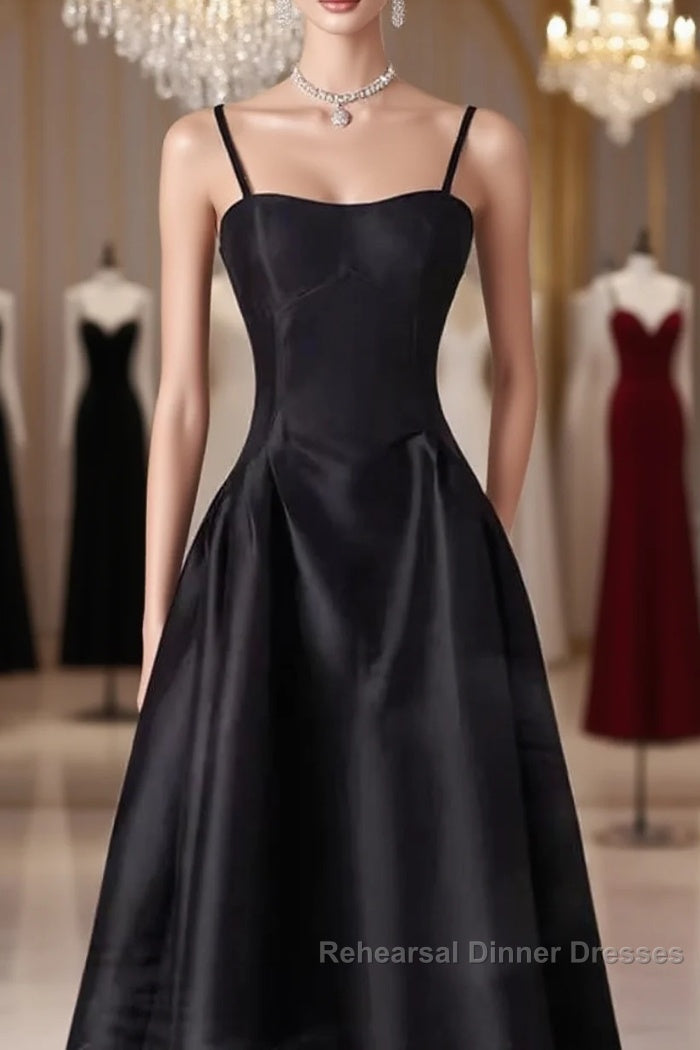 Gorgeous A Line Straps Satin Black Semi Formal Prom Dress