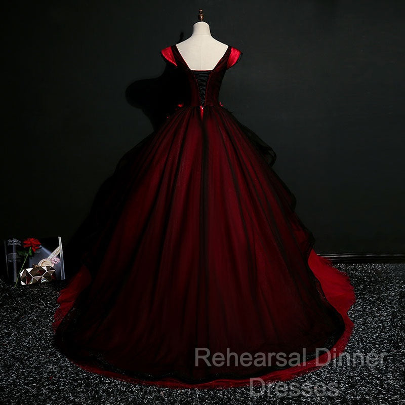 Gorgeous Black And Red Embroidery Quinceanera Dresses, Lace Applique Tulle Gowns