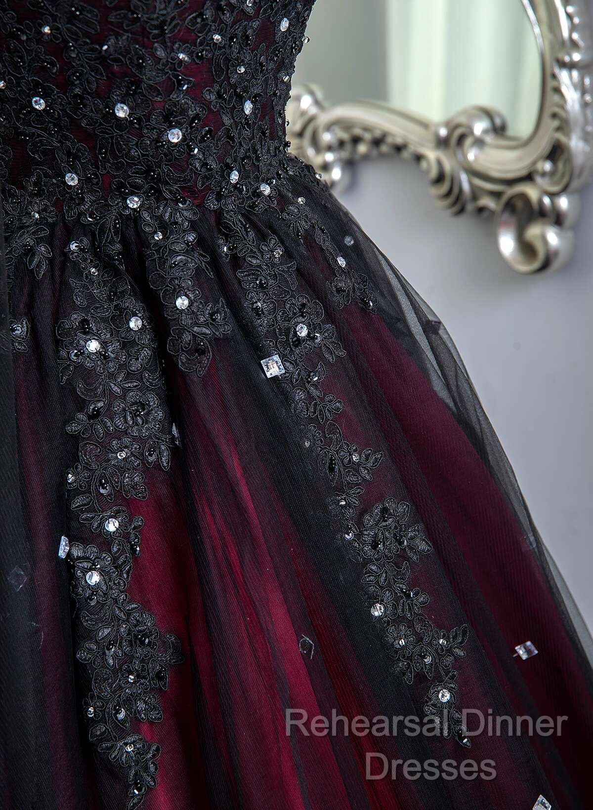 Gorgeous Black And Red Tulle Ball Gown Sweet 16 Dress With Cape, Long Semi Formal Prom Dress