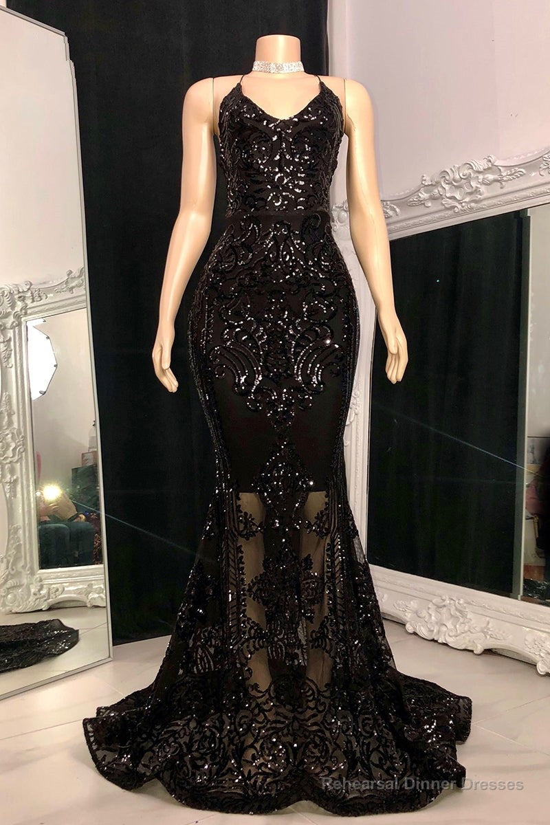 Gorgeous Halter V-Neck Sleeveless Mermaid Prom Dresses Sequins Long