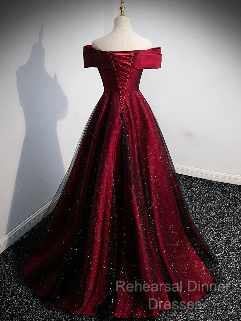 Gorgeous Wine Red Satin Off Shoulder Party Dress , Beautiful Wine Red Semi Formal Prom Dresses