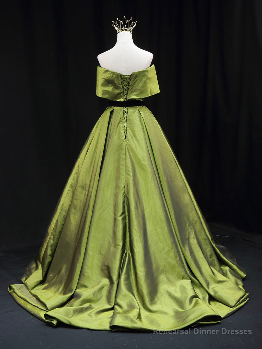Green A line Satin Long Prom Dress, Green Satin Formal Evening Dresses