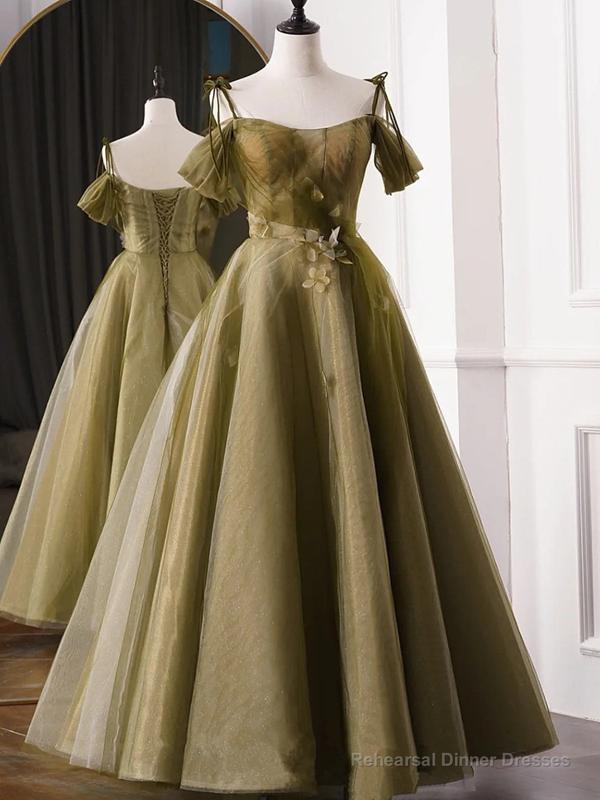 Green A-line Tulle Long Sweetheart Party Dress, Green Tulle Prom Dress