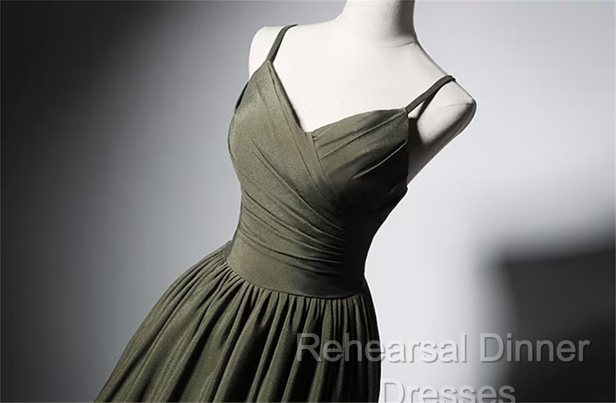 Green Satin Straps Long Wedding Party Dress, Green Long Semi Formal Prom Dress Evening Dress