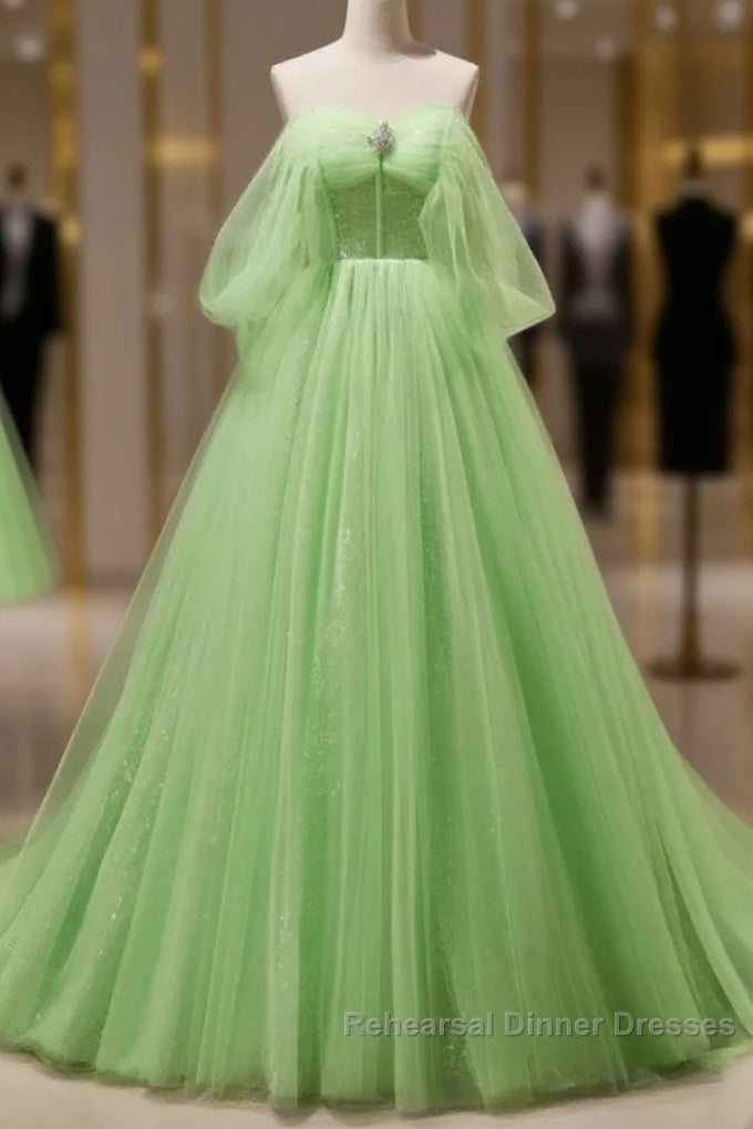 Green Tulle Beading Off Shoulder Sparkle Semi Formal Prom Dress